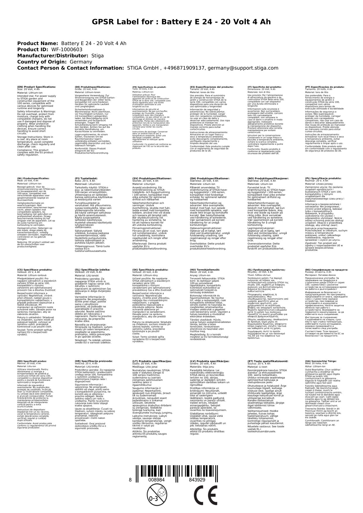 Stellen Sie eine Frage, um mehr über das Produkt zu erfahrenDer STIGA Akku E 24 bietet eine hohe Leistung und ist mit allen Geräten der STIGA 100er Serie kompatibel. Er passt die Energieabgabe automatisch an das angeschlossene Gerät an und sorgt so für eine optimierte Laufzeit und eine längere Lebensdauer des Akkus. Mit einer Kapazität von 4 Ah und 20 Volt ist der Akku ideal für den Einsatz in verschiedenen STIGA Geräten geeignet.