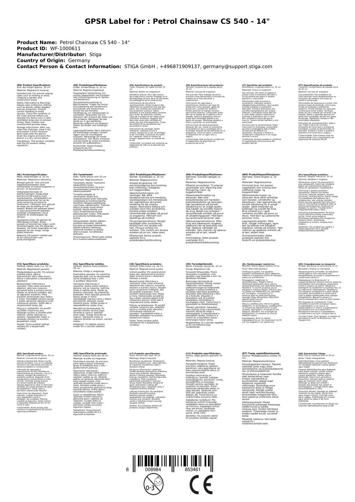 Stellen Sie eine Frage, um mehr über das Produkt zu erfahrenDie STIGA Benzin-Kettensäge CS 540 14'' überzeugt mit starker Leistung und leichtem Handling. Sie eignet sich hervorragend für präzise Sägearbeiten wie Entasten oder Holzzerkleinerung.