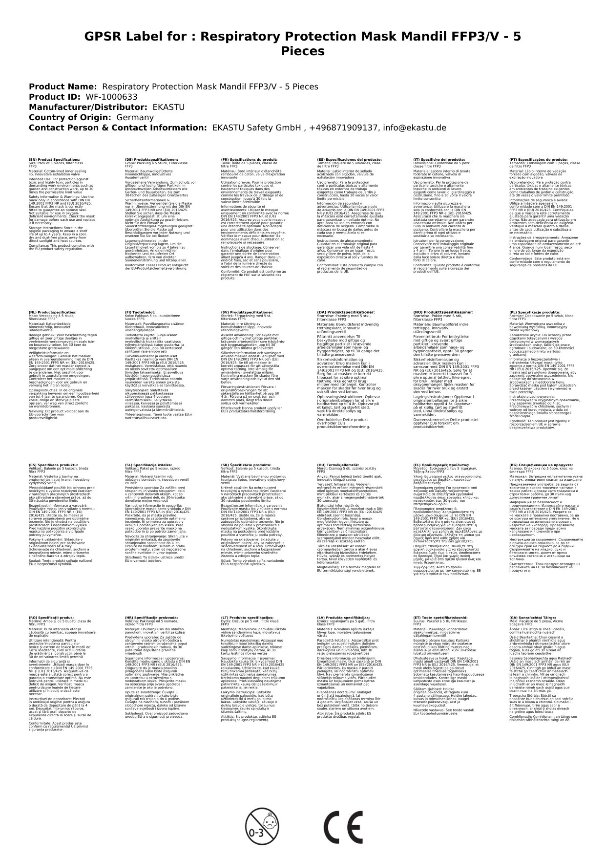 - Filterklasse DIN EN 149:2001 FFP3 NR & (EU) 2016/425