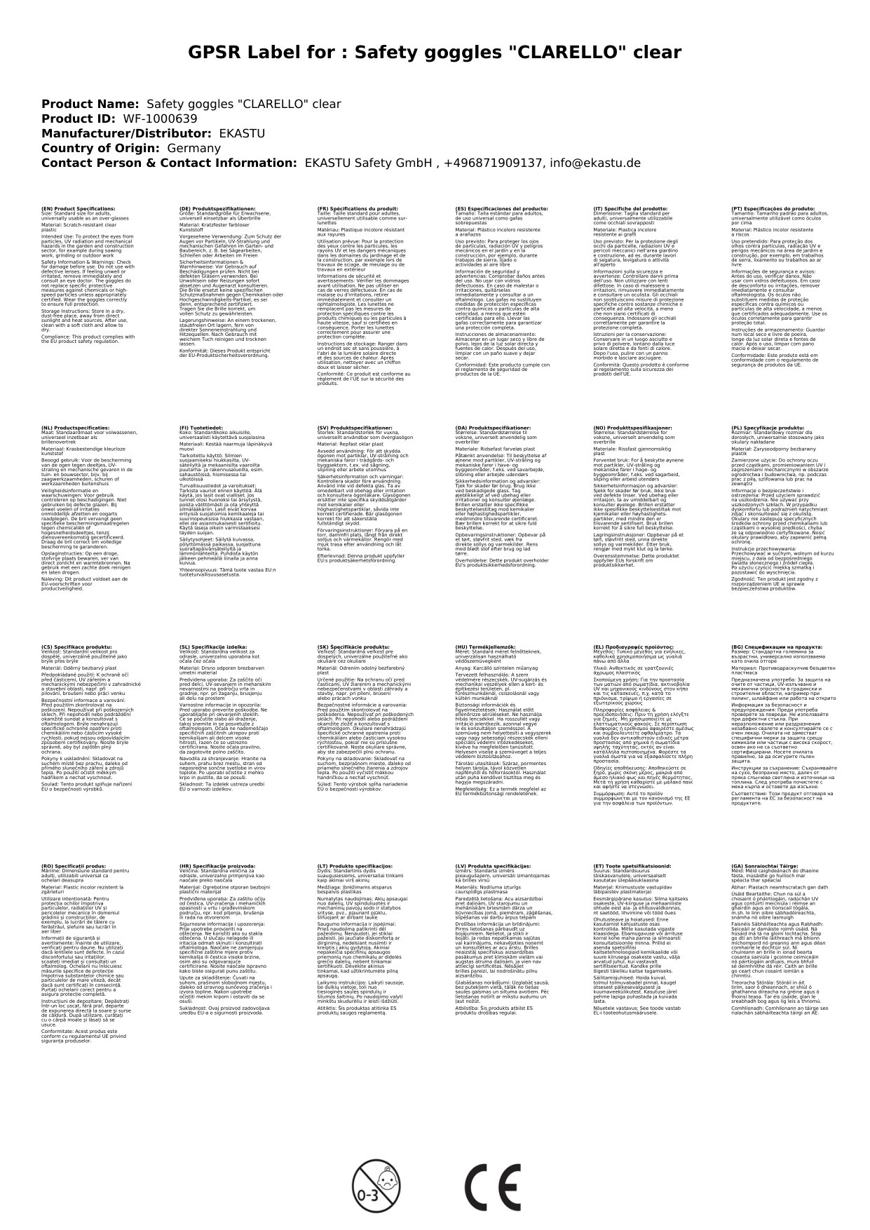 Die Schutzbrille CLARELLO farblos ist die ideale Wahl für Ärzte, Krankenschwestern, Pflegepersonal, Laboratorien sowie Besucher. Sie bietet zudem auch im industriellen Bereich hervorragenden Schutz und Komfort. Die Brille besteht aus farblosem Kunststoff, der kratzfest ist. Ihre ausgezeichnete Sichtqualität sorgt dafür, dass Sie jederzeit klare und präzise Sicht haben, während sie gleichzeitig einen rundum sicheren Schutz für Ihre Augen bietet.