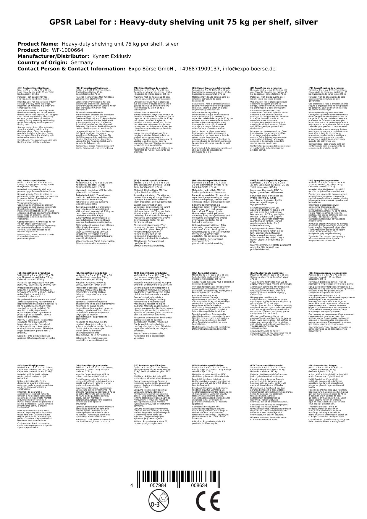 Stellen Sie eine Frage, um mehr über das Produkt zu erfahrenDas Kynast Schwerlastregal ist die perfekte Wahl für die sichere und ordentliche Lagerung schwerer Gegenstände. Die fünf Fachböden aus hochwertigem MDF Material bieten viel Stauraum. Dank des robusten, galvanisierten Stahlrahmens ist das Regal zudem äußerst stabil und langlebig.