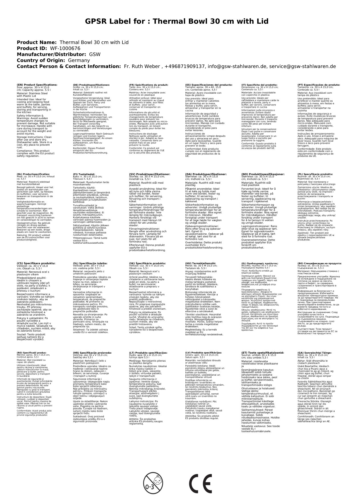 Durch ihre bruchsichere und robuste Machart, eignet sich die Schüssel zudem hervorragend zum Servieren, Aufbewahren und Transportieren. Mit dieser Thermoschüssel aus dem Hause GSW wird die Küche um formschöne und praktische Utensilien ergänzt. Spülmaschinengeeignet.