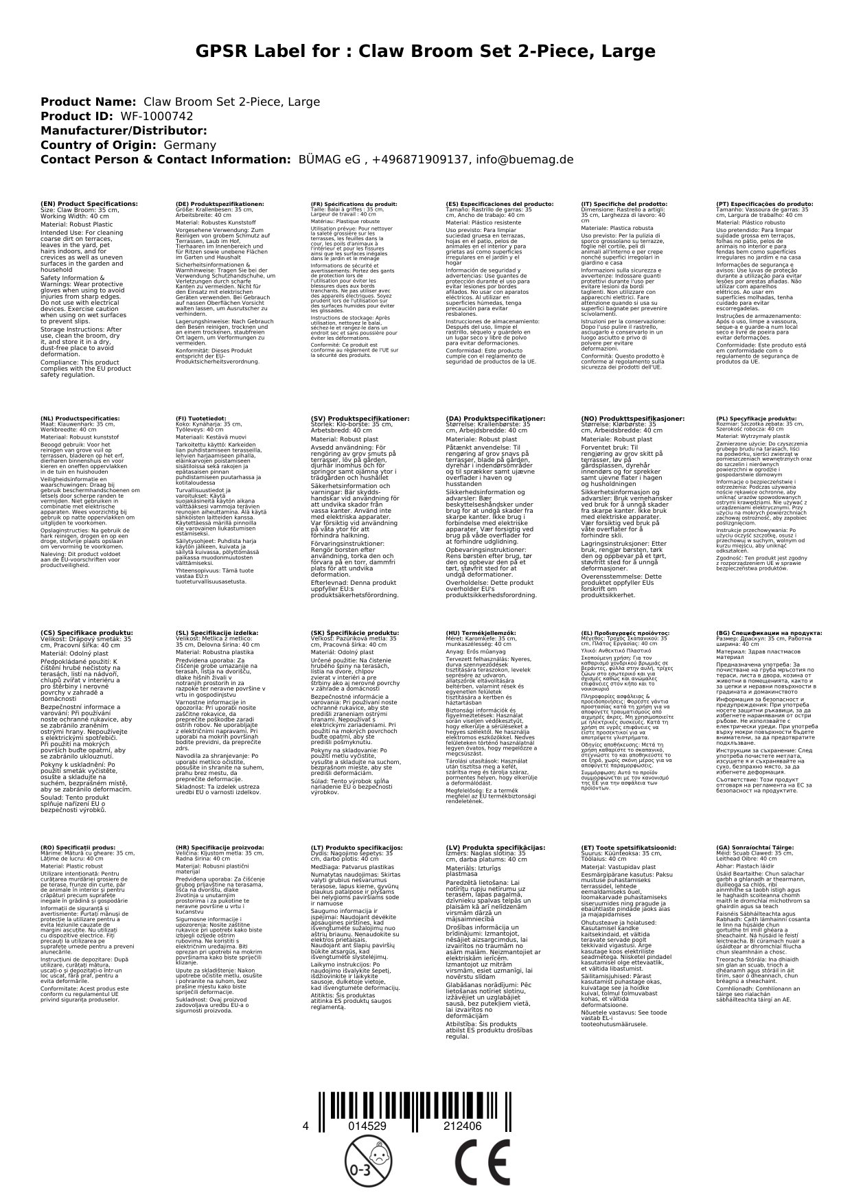 - Krallenbesen: 35 cm