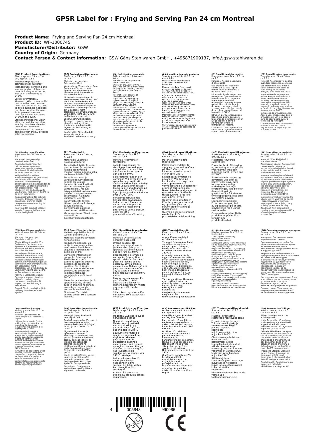 Stellen Sie eine Frage, um mehr über das Produkt zu erfahrenDie für Induktion geeignete Servierpfanne von GSW kann auf allen Herdarten benutzt werden und besteht aus hochwertigem Edelstahl rostfrei und ist mit handfreundlichen Kaltmetallgriffen versehen. Das zeitlose Design wird durch die pflegeleichte, hochglanzpolierte Optik und dem Glasdeckel mit Dampfaustritt abgerundet. Zudem verfügt die Servierpfanne über einen energiesparenden, extra starken Thermo-Kapselboden, welcher eine optimierte Hitzeverteilung auf allen Herdarten inklusive Induktion gewährleistet.