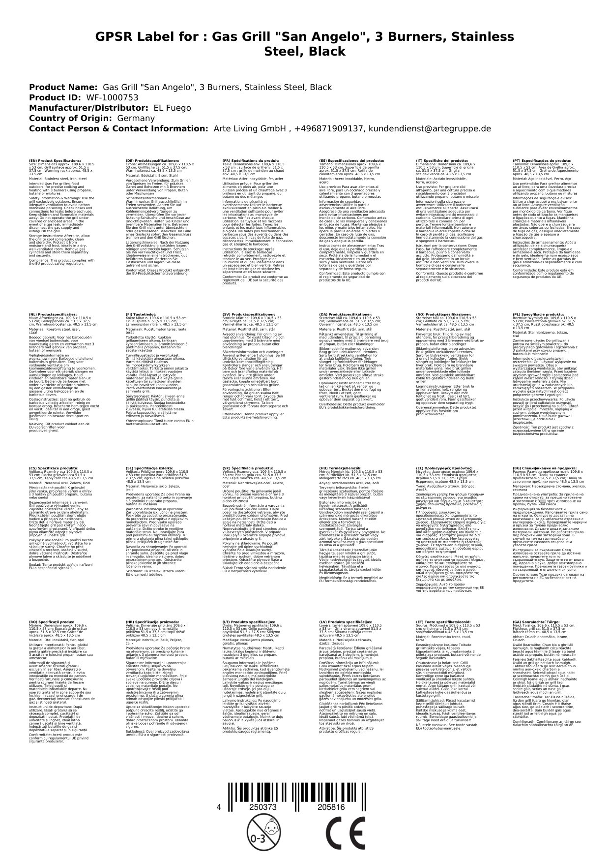 - 1 x Gasgrill „San Angelo“, 3 Brenner, Edelstahl, Schwarz