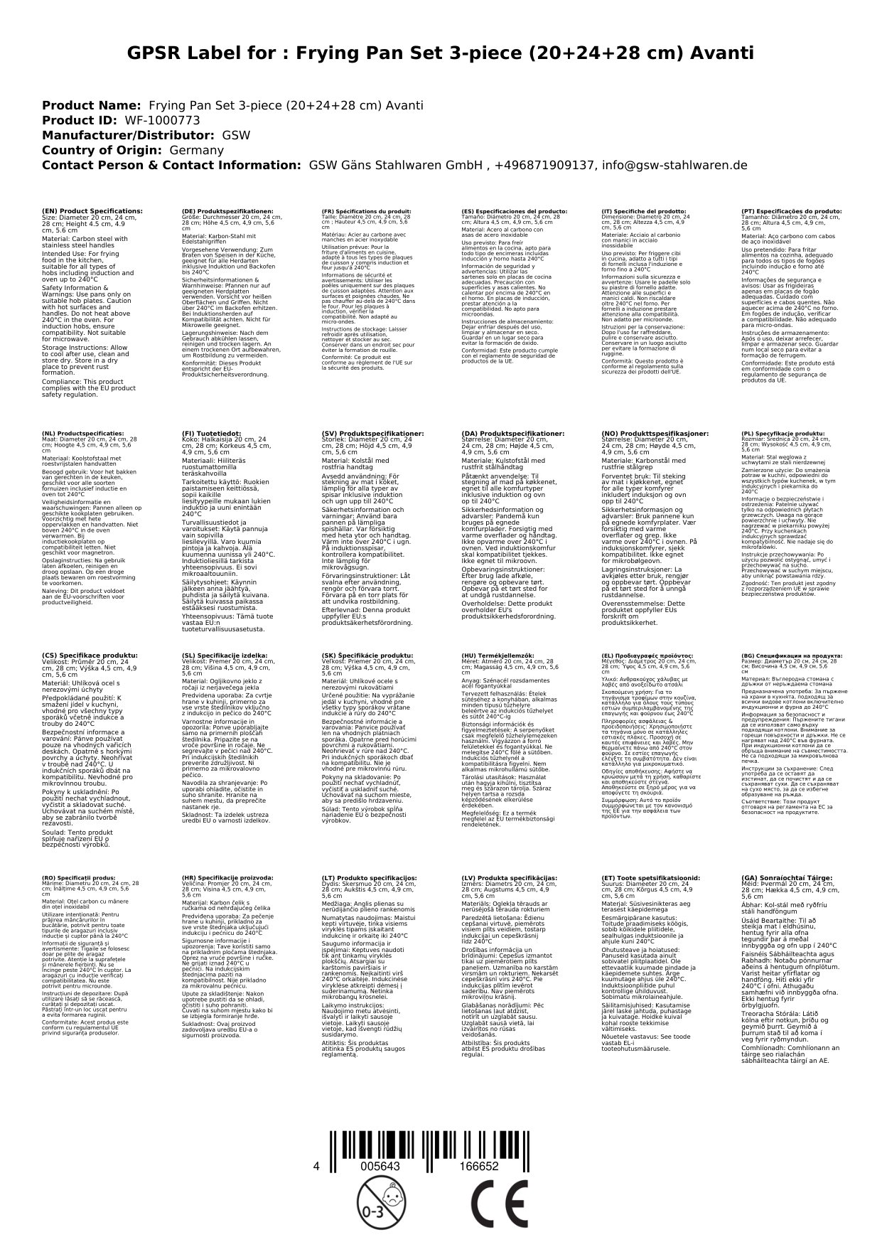 Bratpfannenset 3-tlg (20+24+28 cm) Avanti