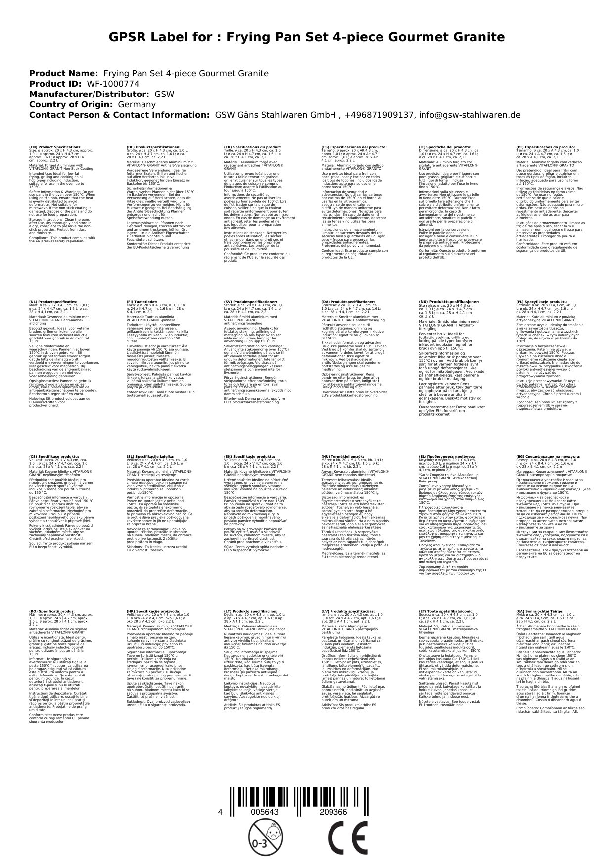 Bratpfannenset 4-tlg Gourmet Granit