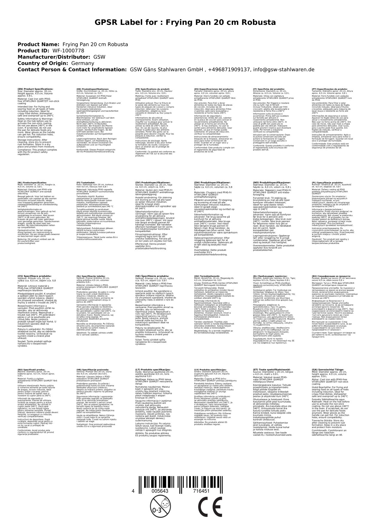 Diese Bratpfanne ist aus extra schwerem Gusseisen gefertigt und verfügt über einen robust genieteten Kaltmetallgriff. Zudem verfügt die Pfanne über eine neuartige PFAS-freie VITAFLON® QUARZIT Antihaft-Versiegelung mit hochwertigem brillantem Finish und einer ausgezeichneten Antihaftwirkung, welche extrem hart und kratzfest ist. Außerdem hat die Pfanne einen eingearbeiteten Wabenboden zur besseren Öl- und Fettverteilung, wodurch sie ideal für Krossgebratenes geeignet ist.