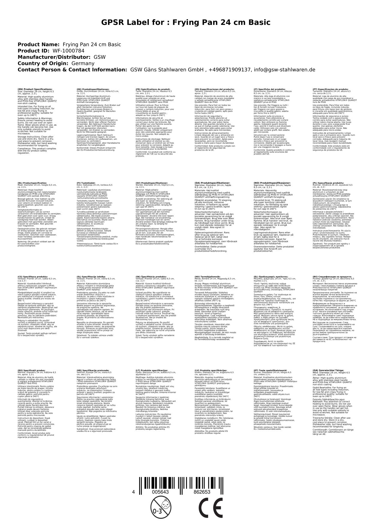 Stellen Sie eine Frage, um mehr über das Produkt zu erfahrenDie für Induktion geeignete Bratpfanne von GSW besitzt einen handlich, genieteten Edelstahl-Rundgriff. Die Pfanne besteht aus einer hochwertigen Aluminium-Legierung in robuster, extra schwerer Gastro-Qualität. Sie verfügt über eine neuartige und nachhaltige PFAS-freie VITAFLON® QUARZIT Antihaft-Versiegelung mit hochwertigem brillantem Finish und einer ausgezeichneten Antihaftwirkung, welche extrem hart und kratzfest ist.