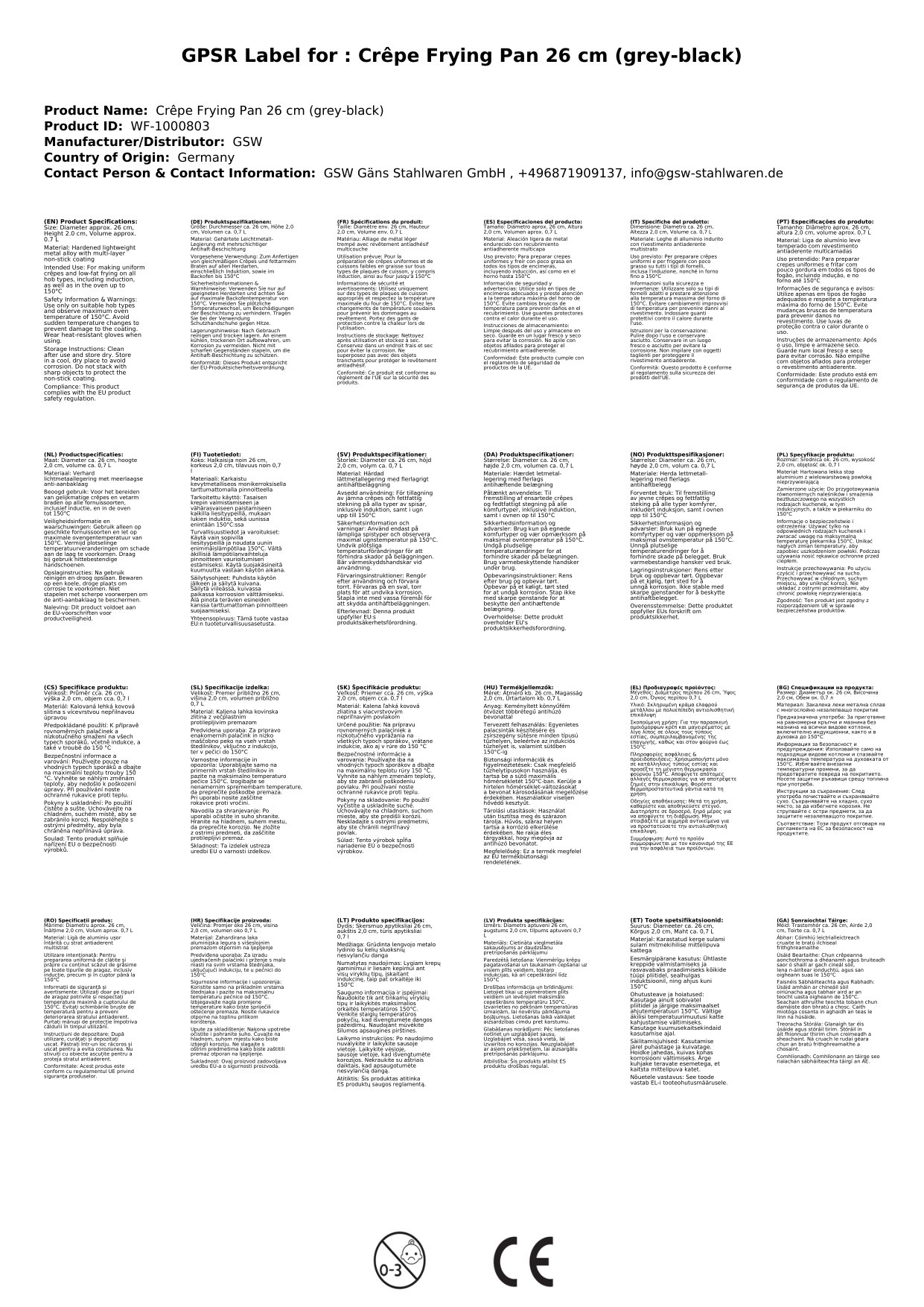 - 1x Crepe-Pfanne ø ca. 26 x H 2,0 cm, ca. 0,7 L