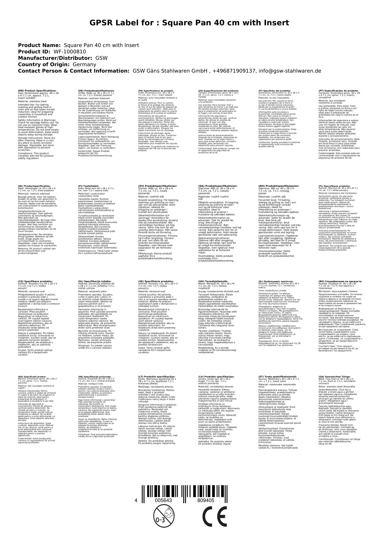Stellen Sie eine Frage, um mehr über das Produkt zu erfahrenDiese Auflaufform ist aus rostfreiem Edelstahl gefertigt, verfügt über stabile Edelstahl-Fallgriffe und einen zusätzlichen Grilleinsatz. Zudem besitzt die Auflaufform einen extra hohen Rand und ist innen und außen leicht zu reinigen. Durch den direkten Kontakt zur Heizquelle ist eine schnelle und optimierte Hitzeverteilung auf allen Herdarten - außer Induktion gewährleistet.
