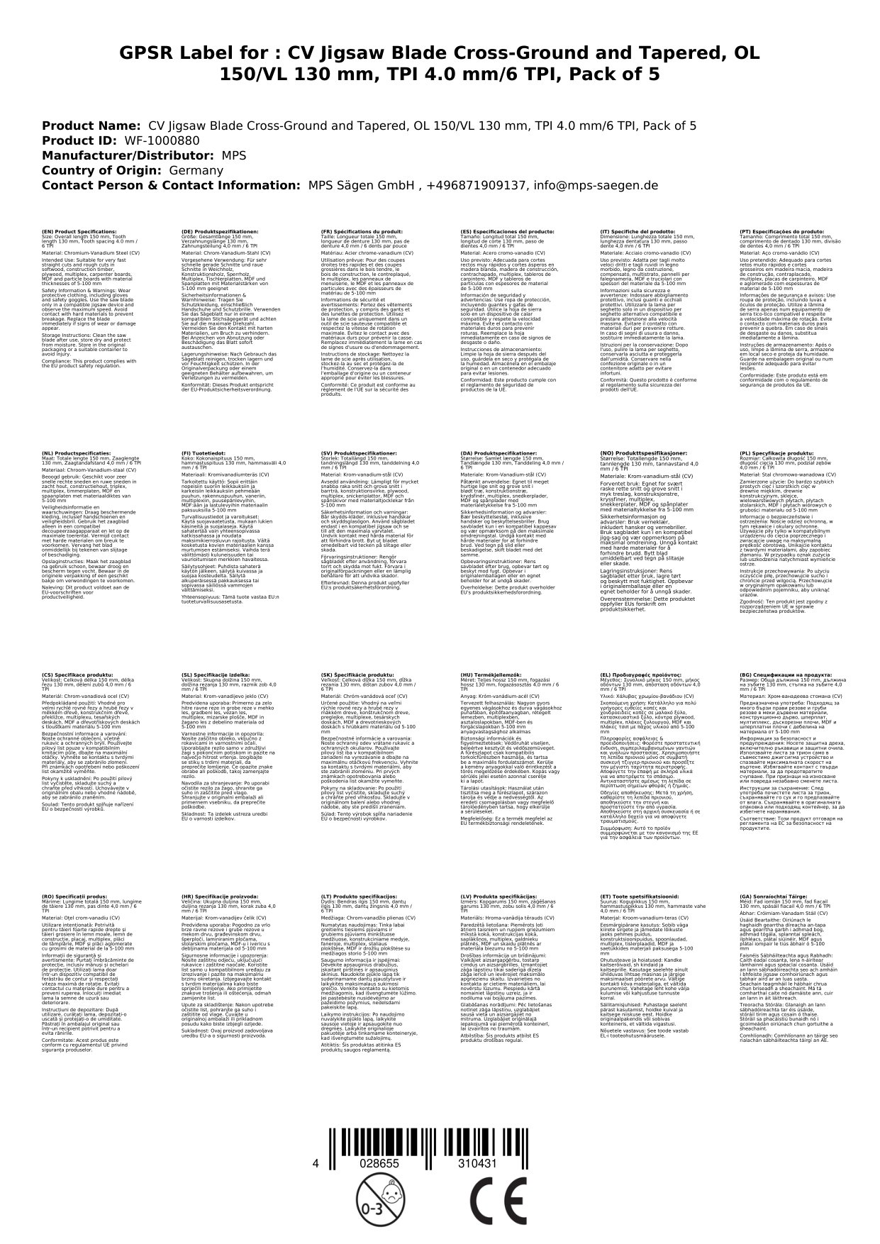 Das hochwertige Chrom-Vanadium-Stahl (CV) garantiert eine lange Lebensdauer und hohe Belastbarkeit. Ob feine Ausschnitte oder grobe Zuschnitte – mit diesem Stichsägeblatt gelingt Ihnen jede Arbeit mühelos.