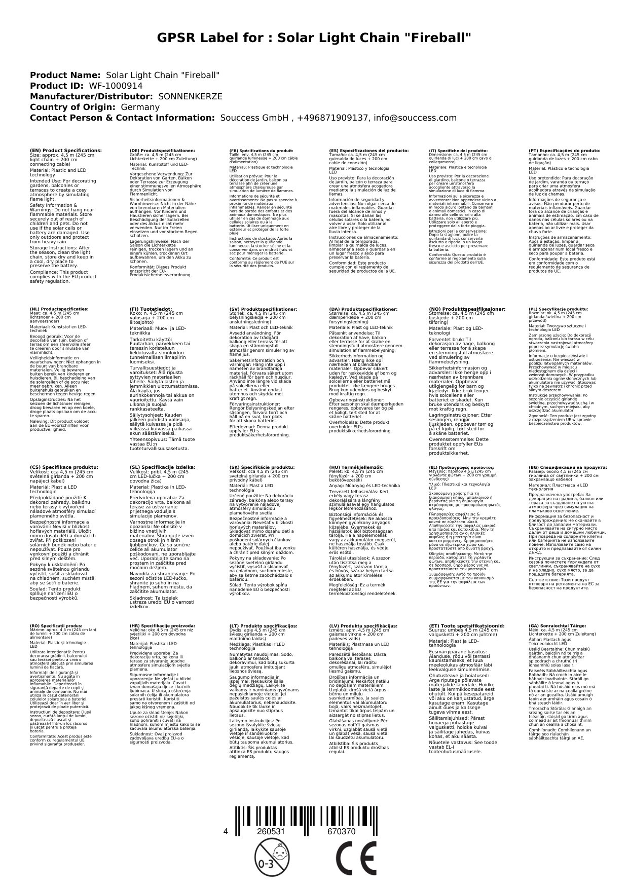 - ca. 4,5 m (245 cm Lichterkette + 200 cm Zuleitung)