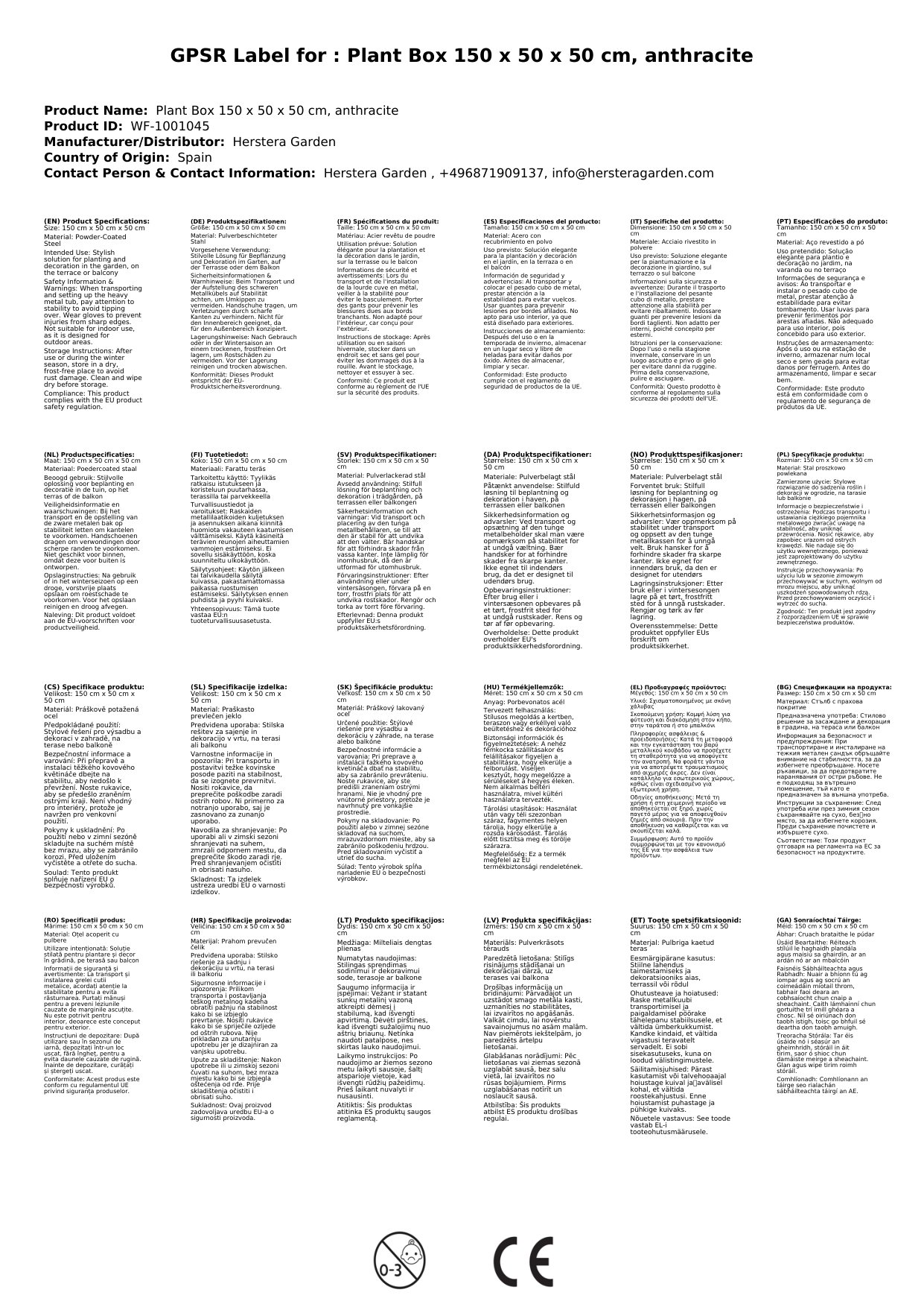 Pflanzkasten 150 x 50 x 50 cm, anthrazit