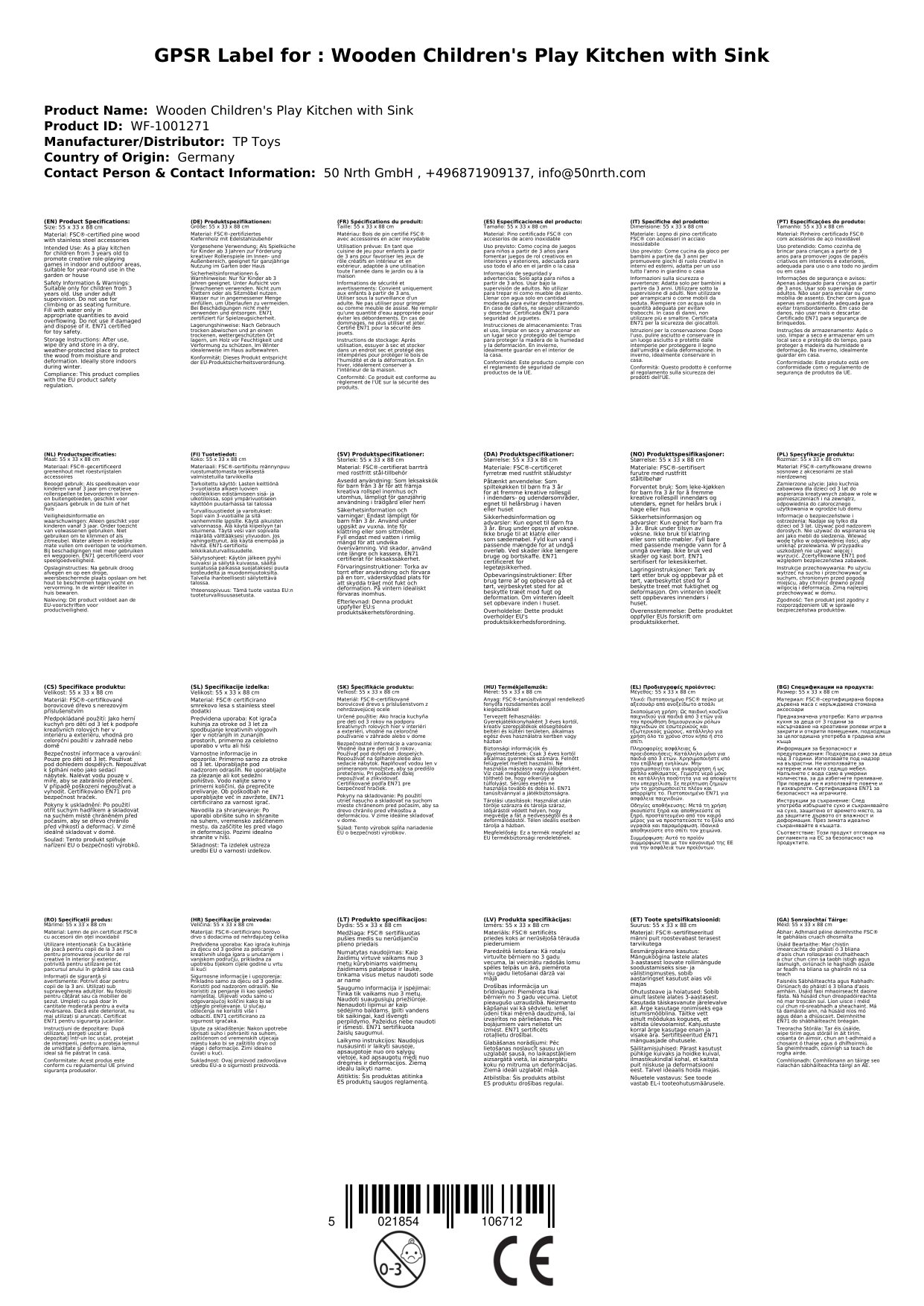 Stellen Sie eine Frage, um mehr über das Produkt zu erfahren"TP Toys Holz Matschküche Natur 55x33x88 cm, inkl. Waschbecken.