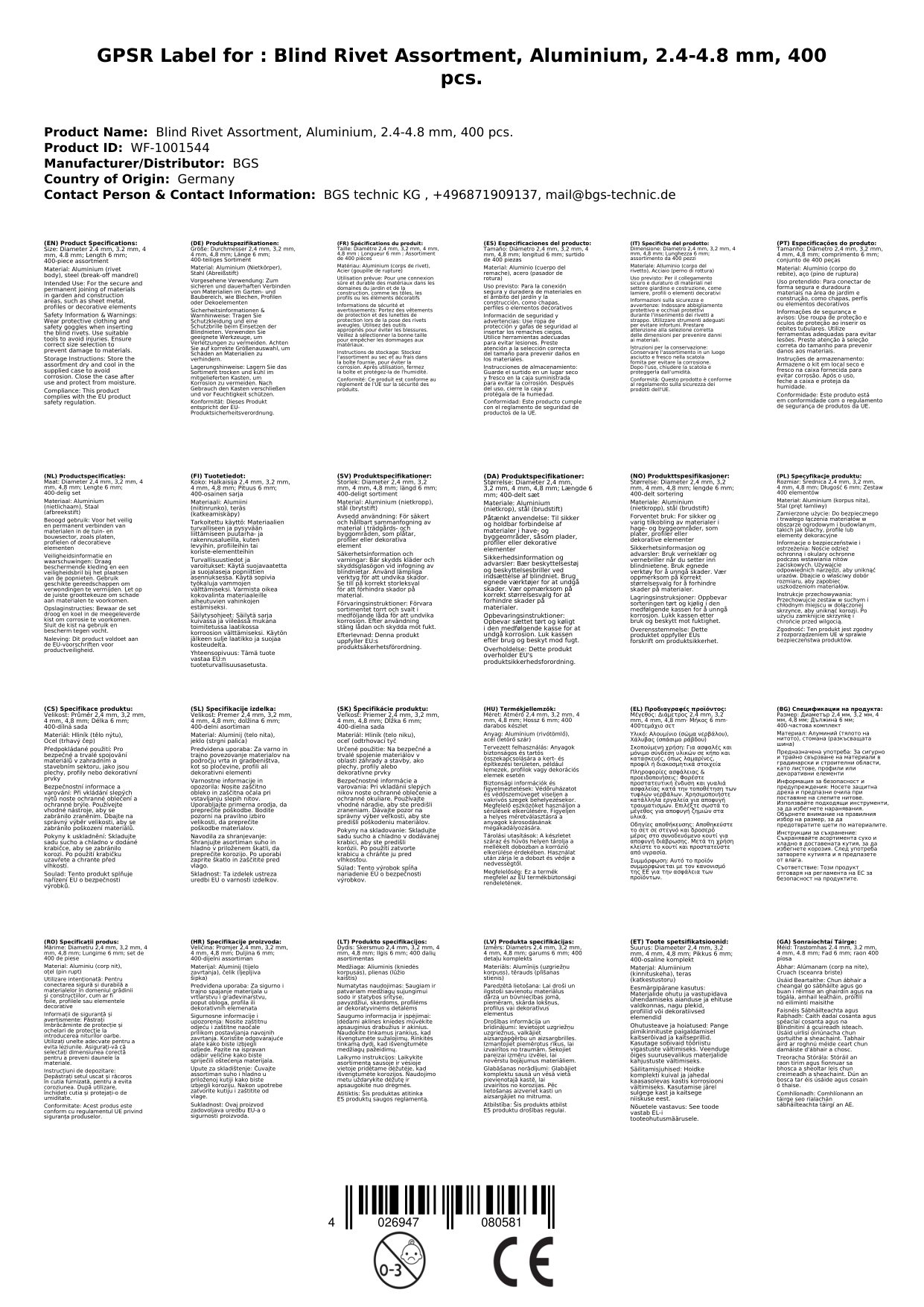 Blindnieten-Sortiment, Aluminium, 2,4-4,8 mm, 400-tlg.