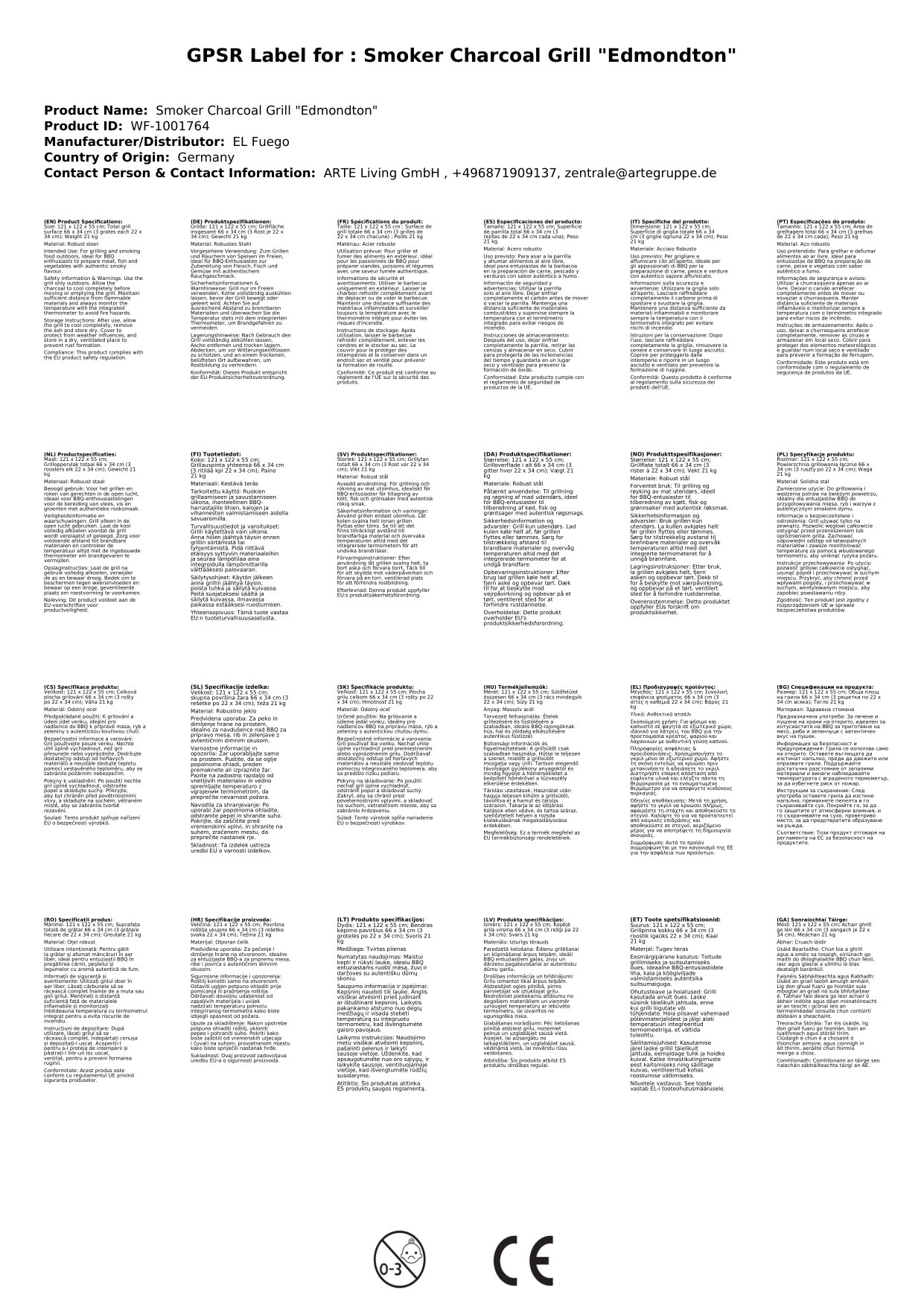 Grill nur im Freien verwenden, Kohle ganz auskühlen lassen.