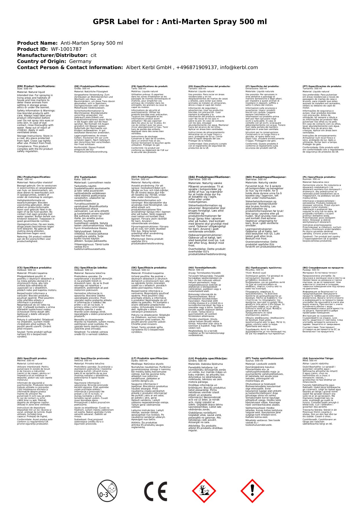 Stellen Sie eine Frage, um mehr über das Produkt zu erfahrenDas Spray hindert Haus- und Baummarder erfolgreich daran, sich in den behandelten Bereichen niederzulassen: Speicher, Dachgeschosse oder unter der Motorhaube Ihres Autos.