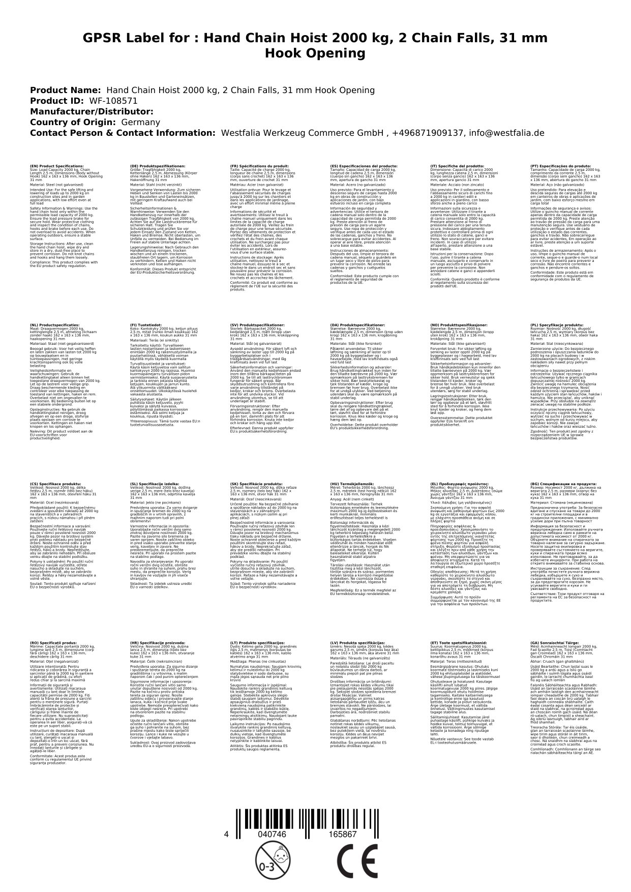 | Hubhöhe | 250 cm |
