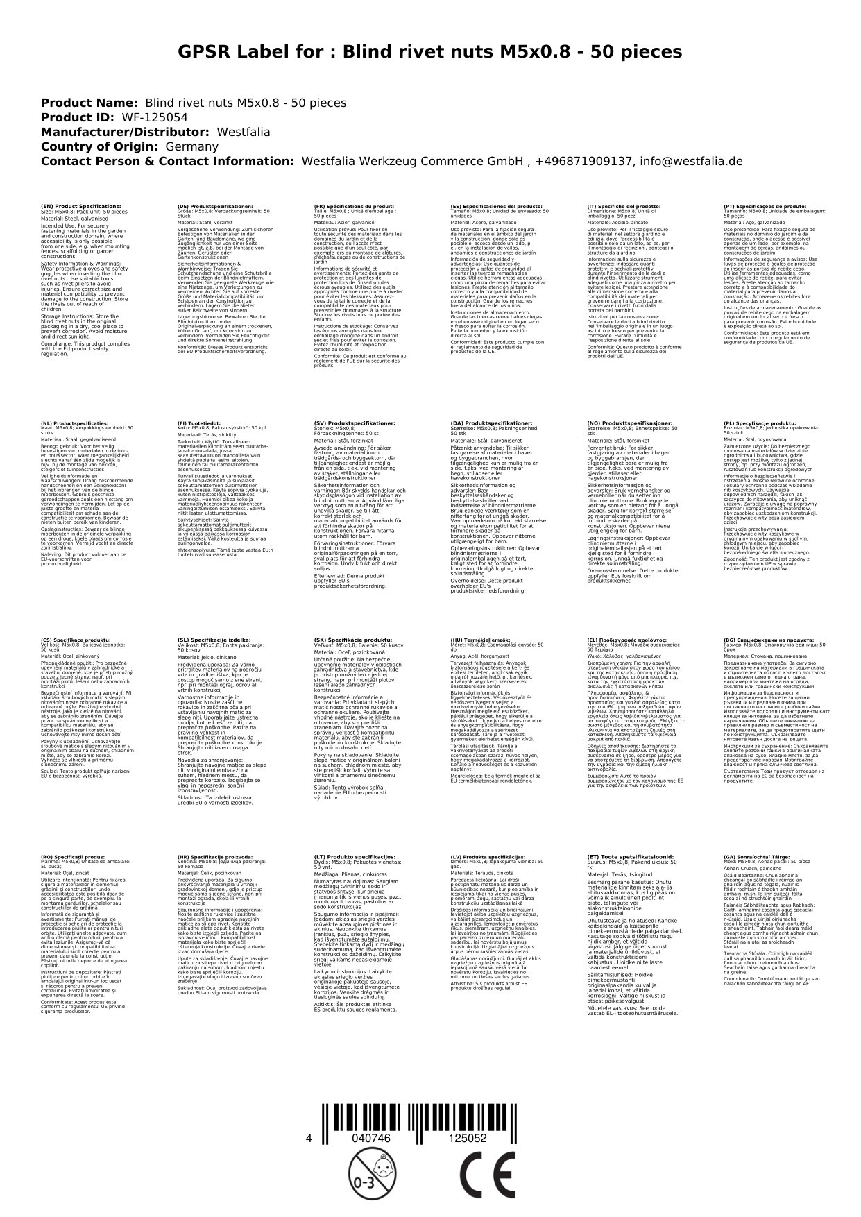 EU-Verantwortlicher Name: Westfalia Werkzeug Commerce GmbH