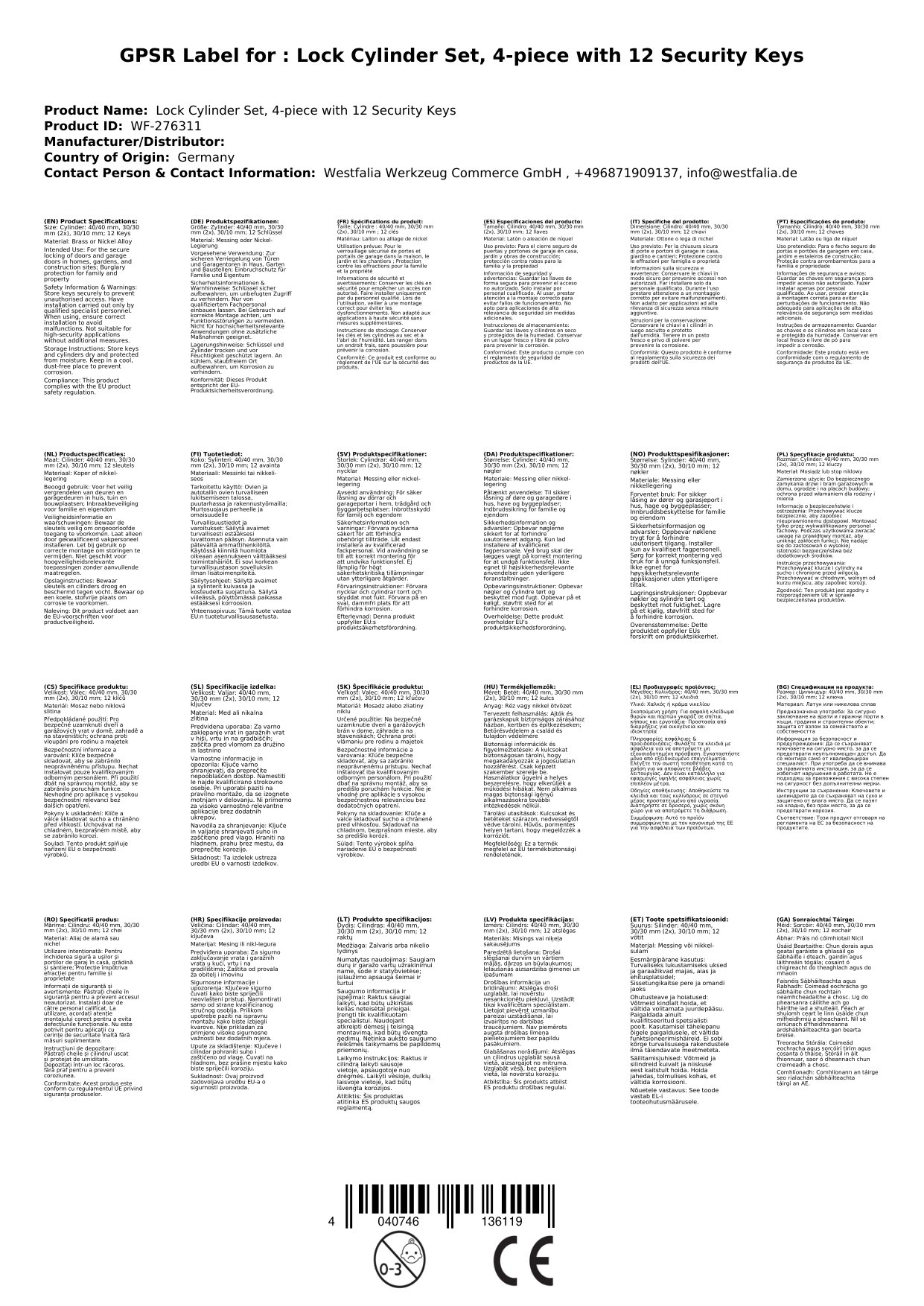 4-teiliger Schließzylinder-Satz, komplett mit zwölf Schlüsseln für die ganze Familie.