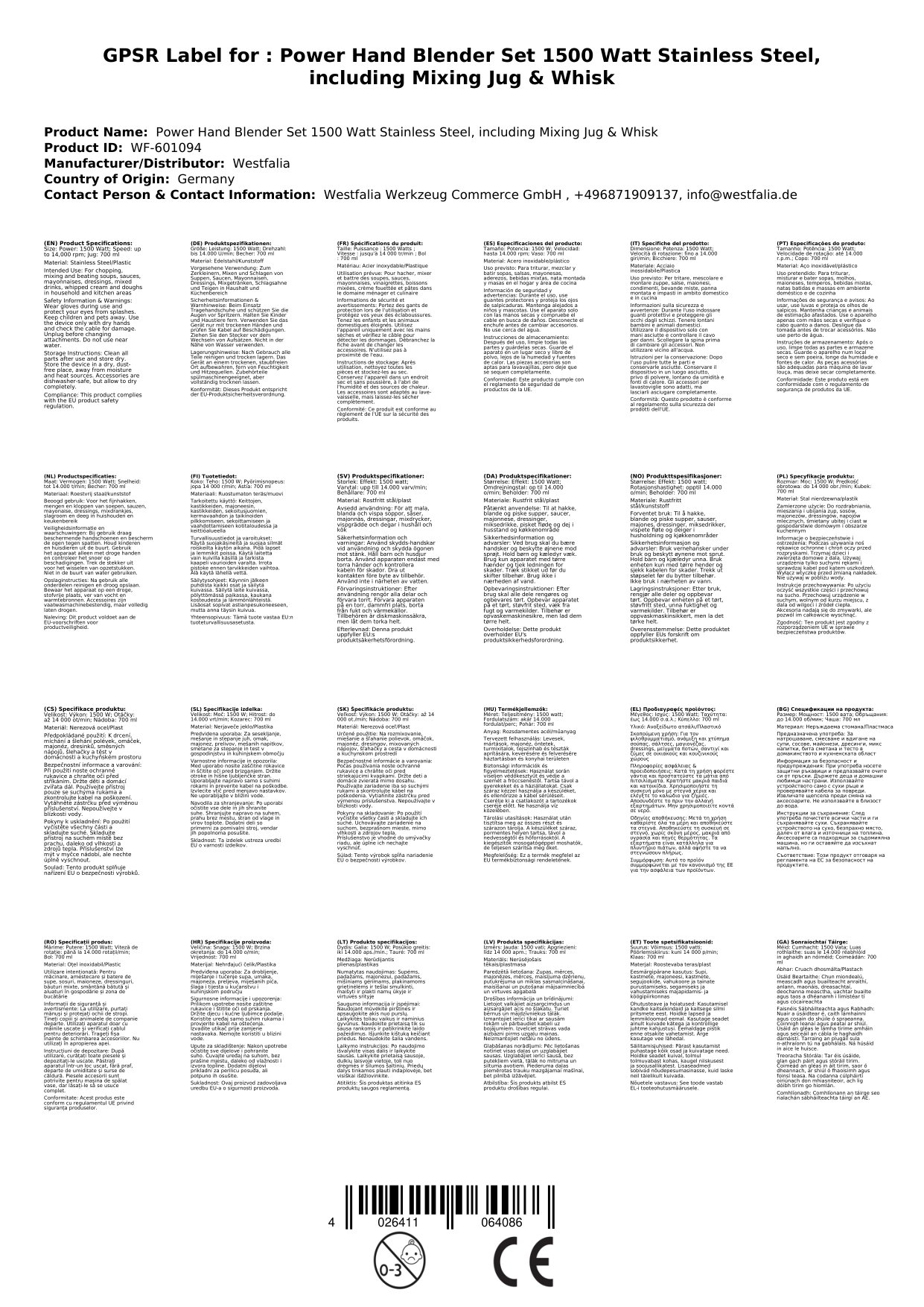 Power Stabmixer-Set 1500 Watt Edelstahl, inklusive Rührbecher & Rührbesen