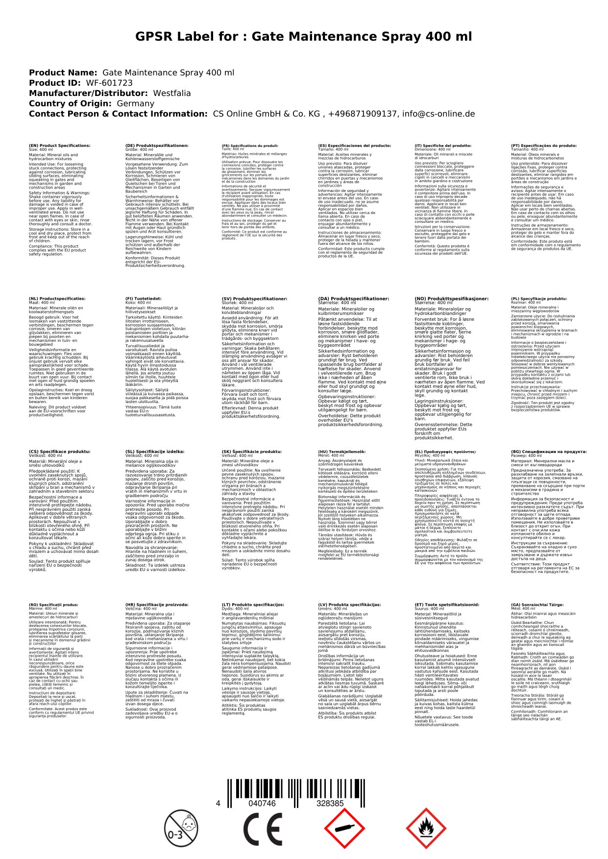 Stellen Sie eine Frage, um mehr über das Produkt zu erfahrenWestfalia Tor Wartungsspray auf Basis von Mineralölen und Kohlenwasserstoffgemischen ist ein bewährtes Schmiermittel.