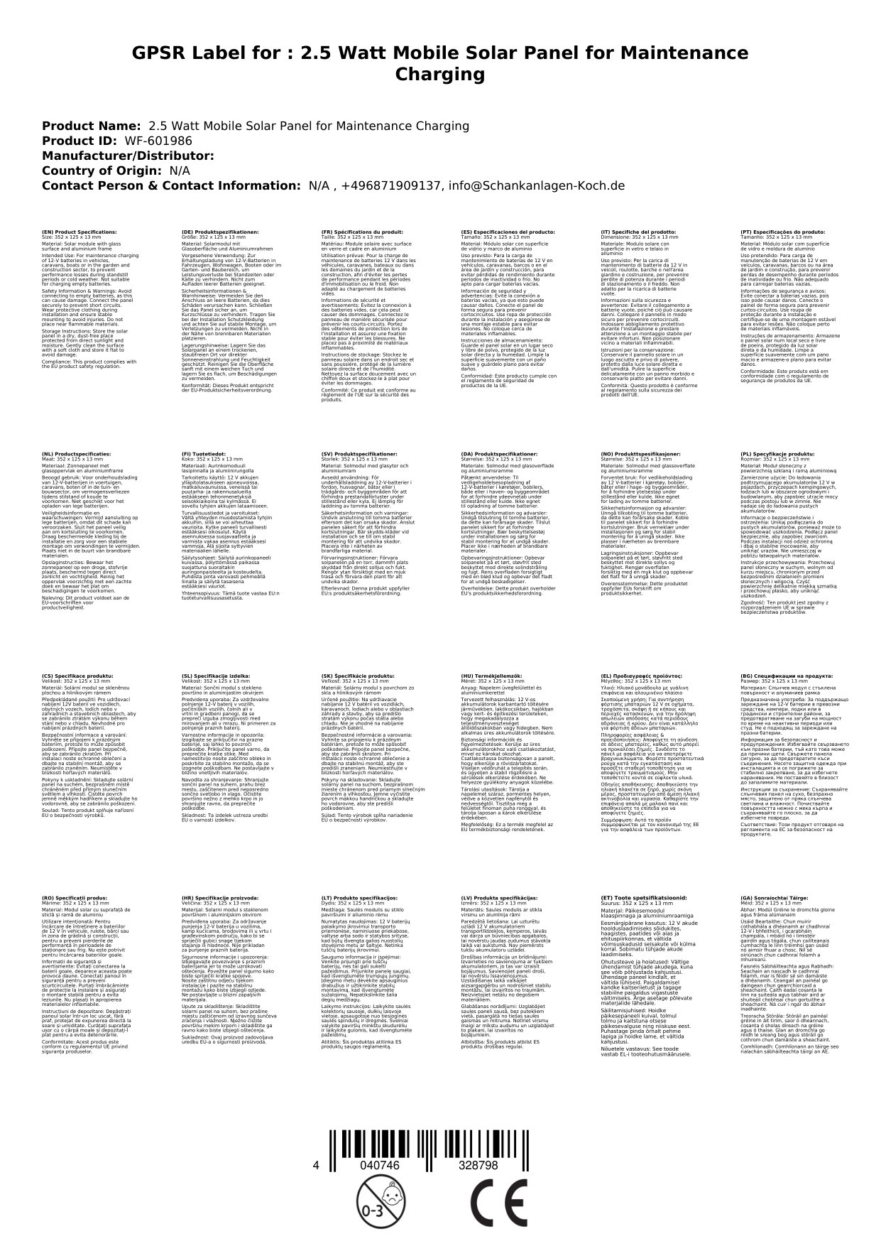 2,5 Watt Mobiles Solarpanel zur Erhaltungsladung