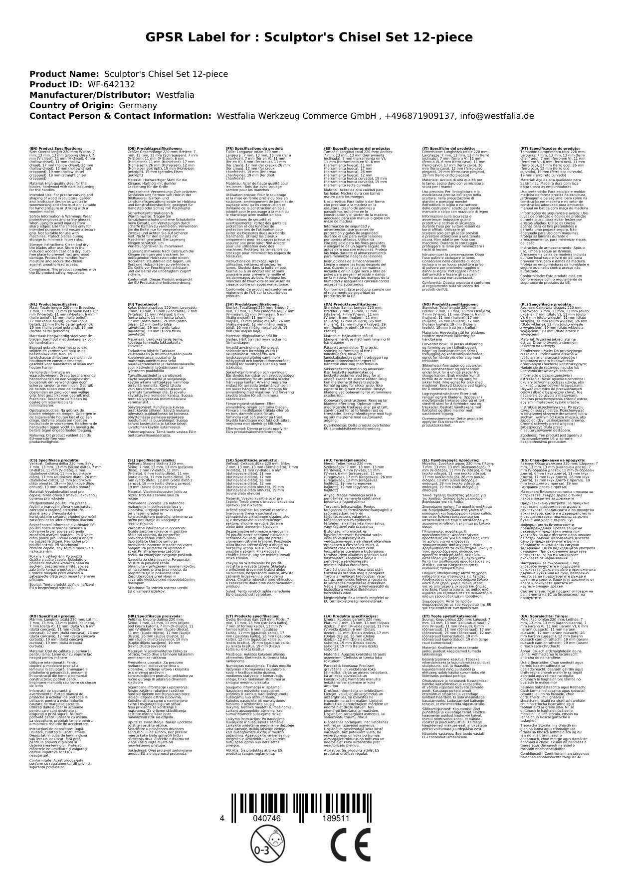 Stellen Sie eine Frage, um mehr über das Produkt zu erfahrenMit diesem professionellen Satz erhalten Sie die gängigsten Bildhauerbeitel. Gesamtlänge 220 mm.