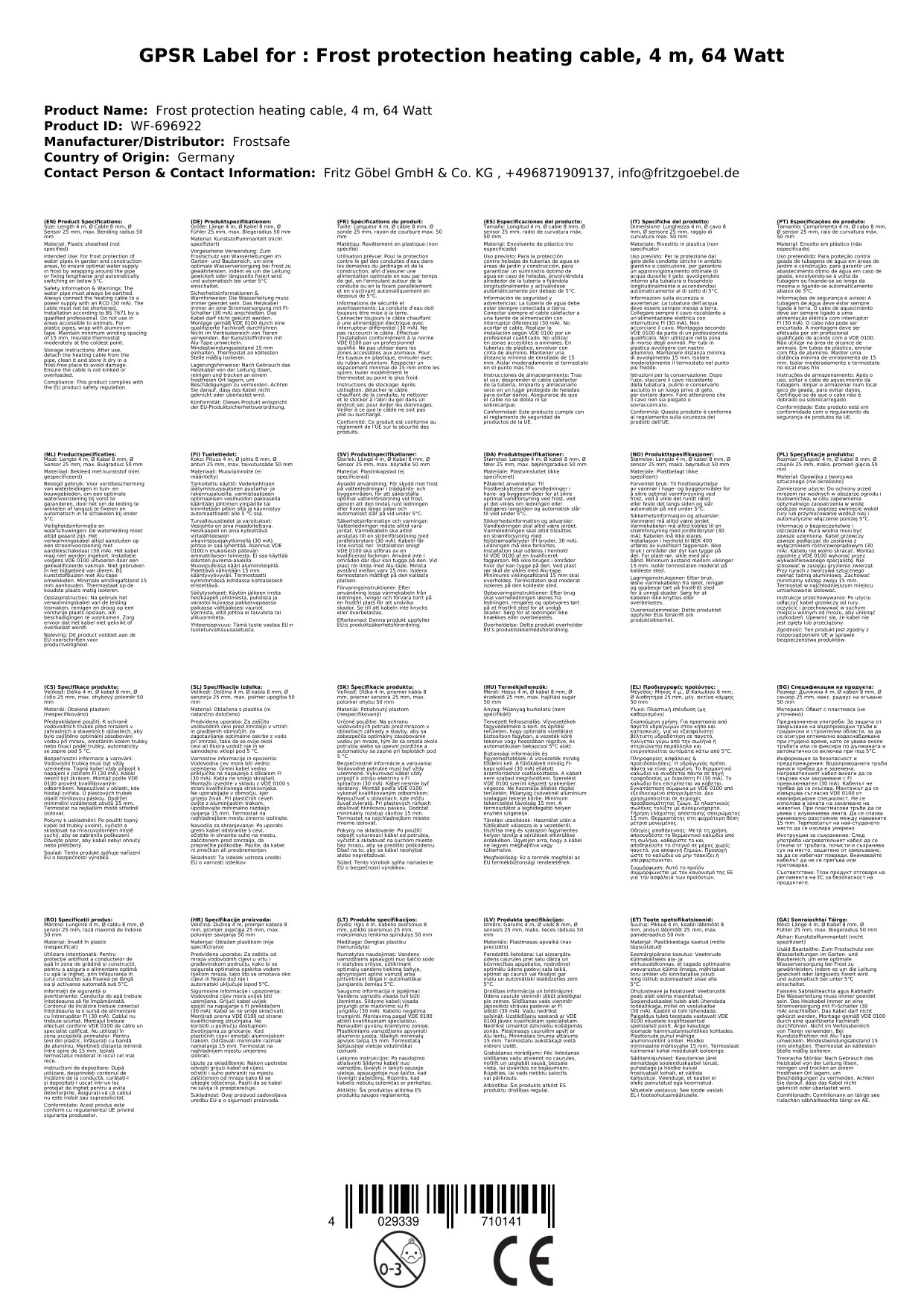 Alle Heizkabel haben ein langes Anschlusskabel und einen wasserfesten Schutzkontaktstecker. Das Kabel besitzt ein integriertes Thermostat und ist daher energiesparend!