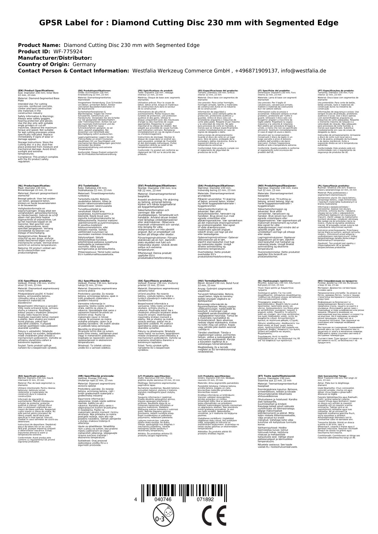 Diamant Trennscheibe 230 mm mit segmentierten Rand