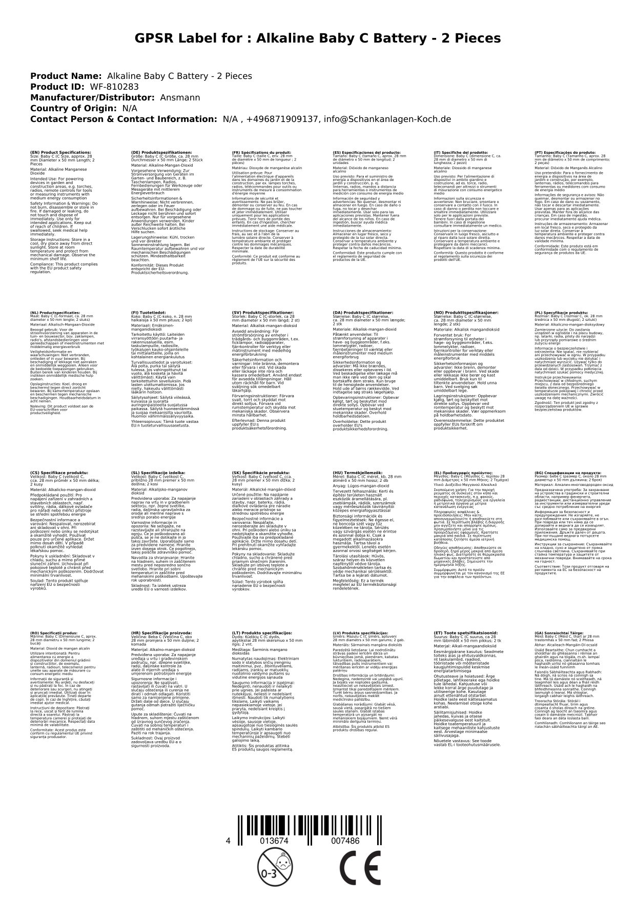 Verlassen Sie sich auf die bewährte Ansmann-Qualität – entwickelt für maximale Leistungsfähigkeit und Sicherheit. Bestellen Sie jetzt die Ansmann Alkaline Baby C Batterien im 2er-Pack und versorgen Sie Ihre Geräte dauerhaft mit Power!