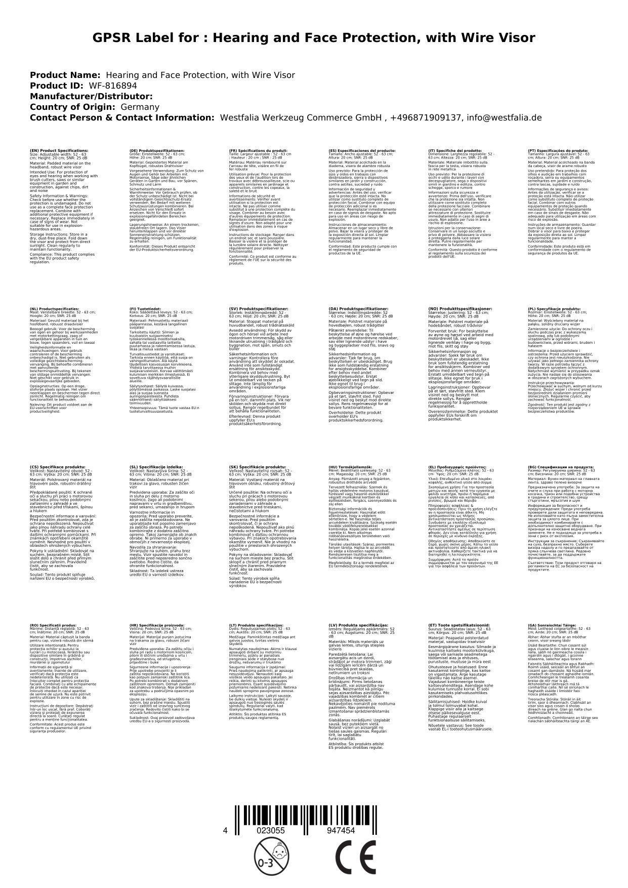 Stellen Sie eine Frage, um mehr über das Produkt zu erfahrenOb bei Arbeiten mit Motorsense oder Säge – dieser Schutz bewahrt Augen und Gehör zuverlässig vor Spänen, Schmutz und Lärm. Das hochklappbare Draht-Visier bietet klare Sicht und hohe Widerstandsfähigkeit, während der gepolsterte Kopfbügel für bequemen Sitz sorgt.