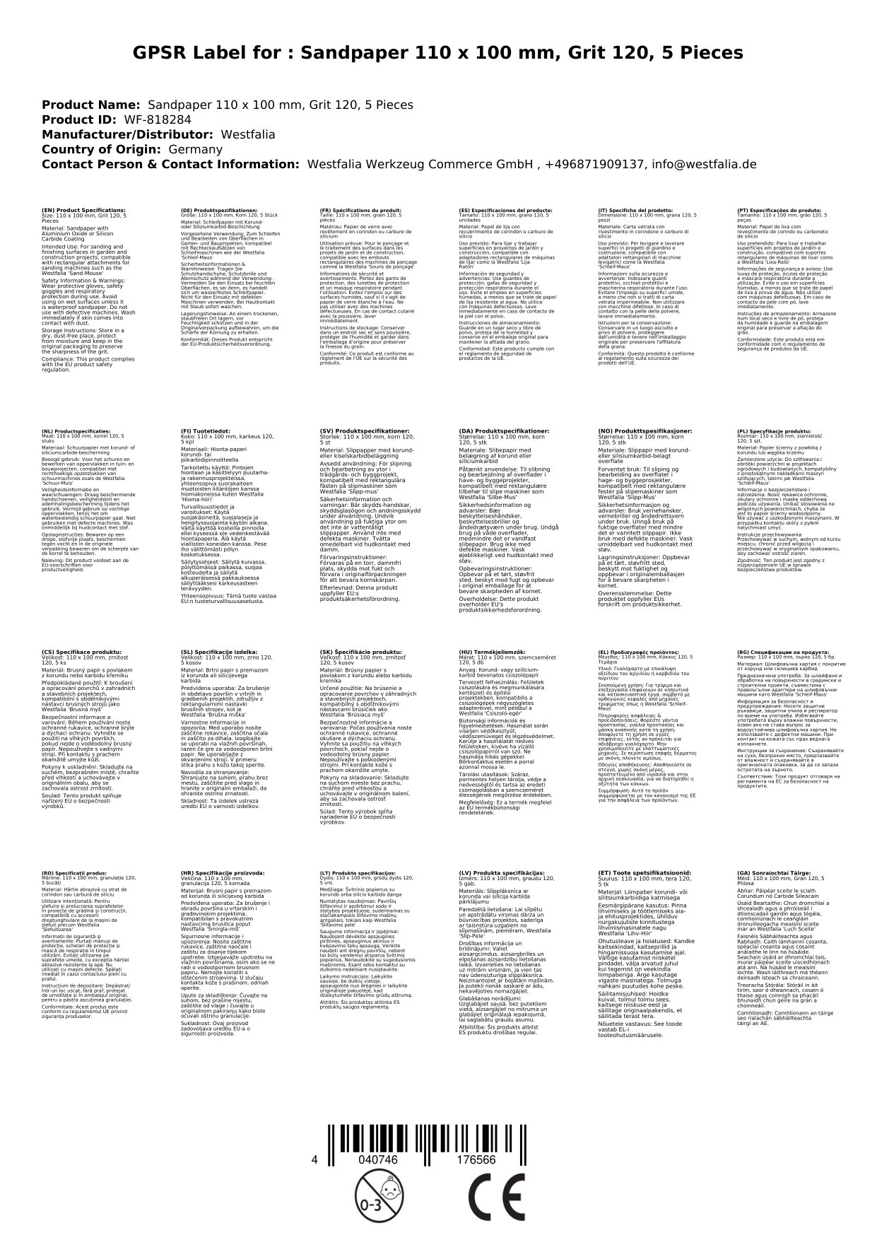 - 1 x Schleifpapier 110 X 100 mm, Korn 120, 5 Stück