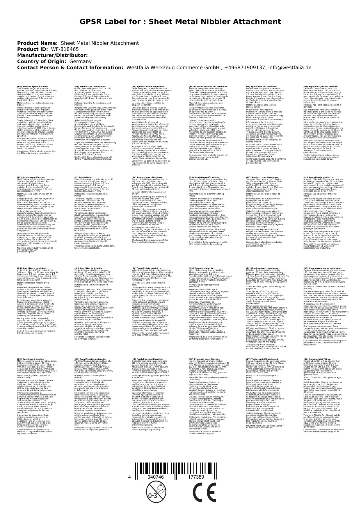 - Max Schneidkapazität in: Stahl 1,8 mm, Edelstahl 1,2 mm, Ne-Metalle 2 mm, Kunststoff 2 mm