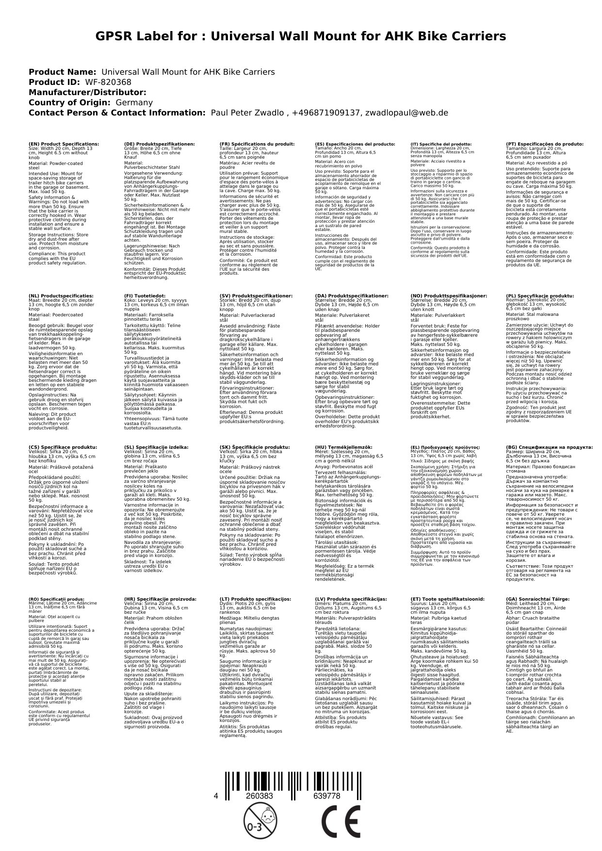 Universeller Wandhalter für AHK Fahrradträger