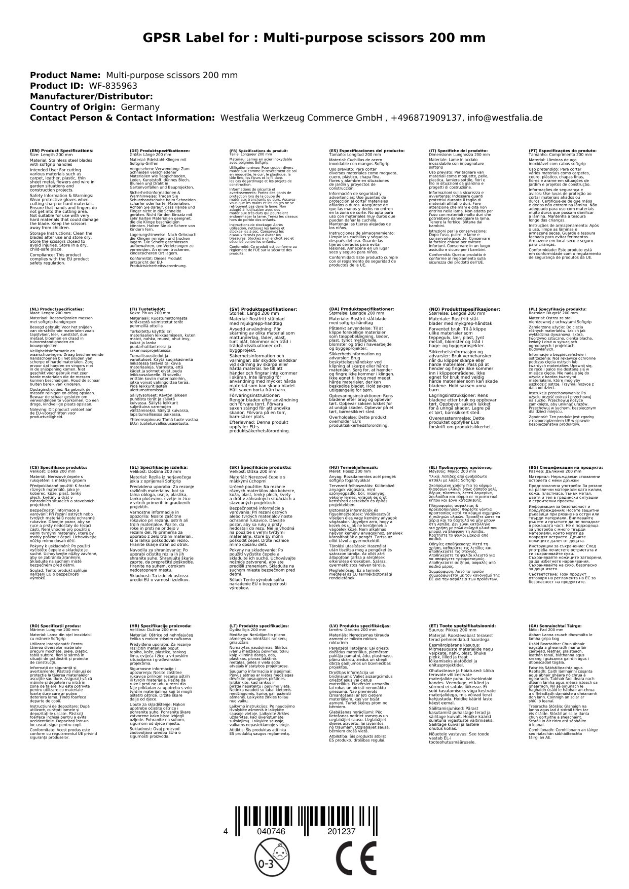 Stellen Sie eine Frage, um mehr über das Produkt zu erfahrenDiese Schere schneidet praktisch alle Materialien (Teppichboden, Leder, Kunststoff, dünnes Blech, Blumen, Draht usw.)
