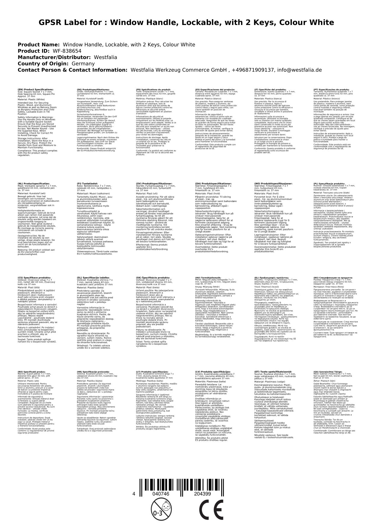 Fenstergriff, abschließbar, mit 2 Schlüsseln, Farbe weiß