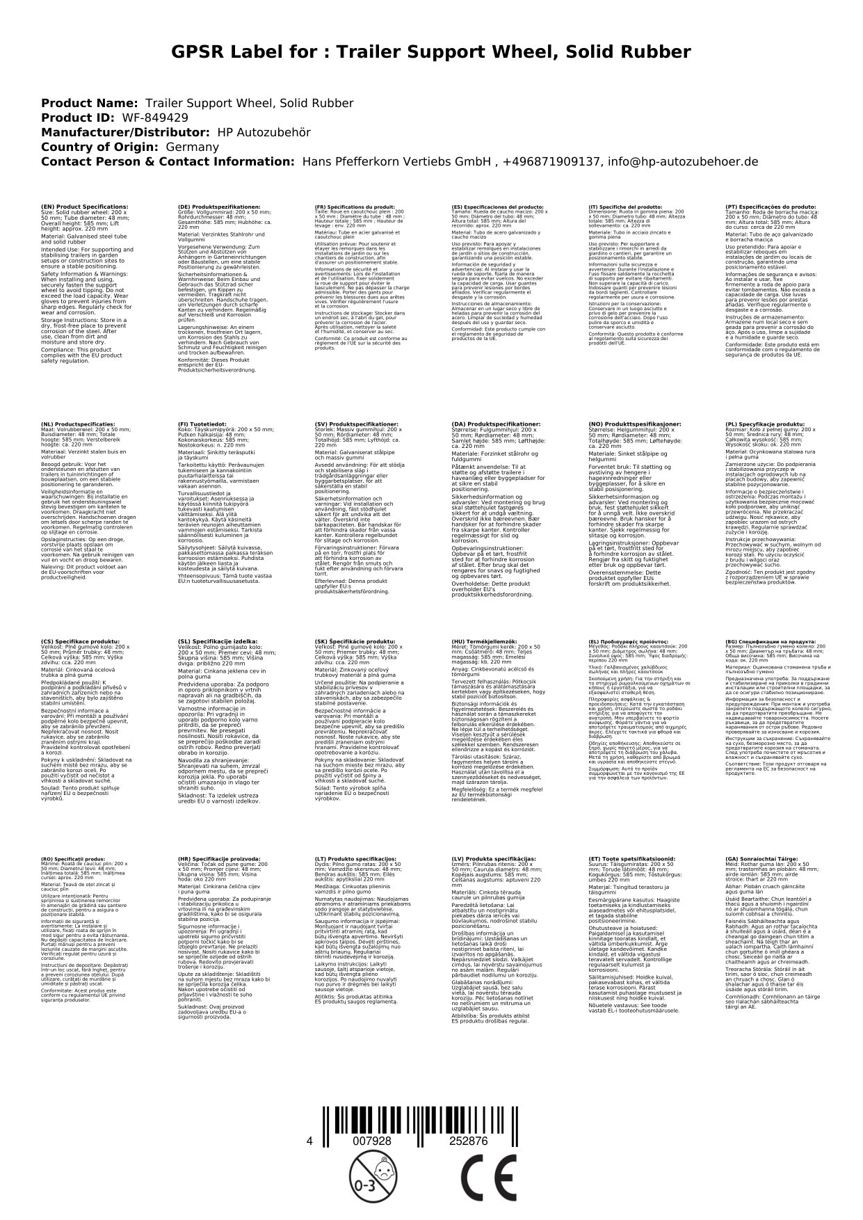 Dieses Stützrad bietet eine hohe Tragkraft und eine robuste Bauweise aus verzinktem Stahlrohr für eine lange Lebensdauer.