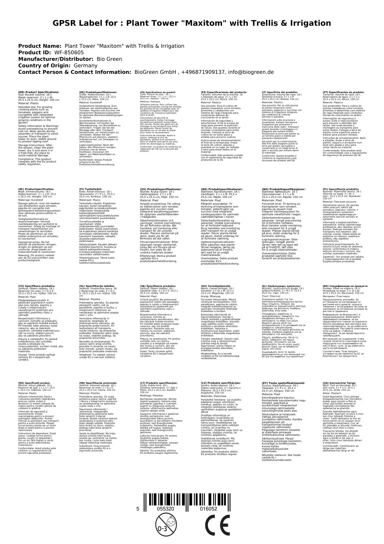 Stellen Sie eine Frage, um mehr über das Produkt zu erfahrenMit dem BioGreen MAXITOM Pflanzturm schaffen Sie optimale Wachstumsbedingungen für Ihre Pflanzen. Das integrierte Bewässerungssystem sorgt für gleichmäßige Wasserzufuhr und unterstützt das gesunde Wachstum.