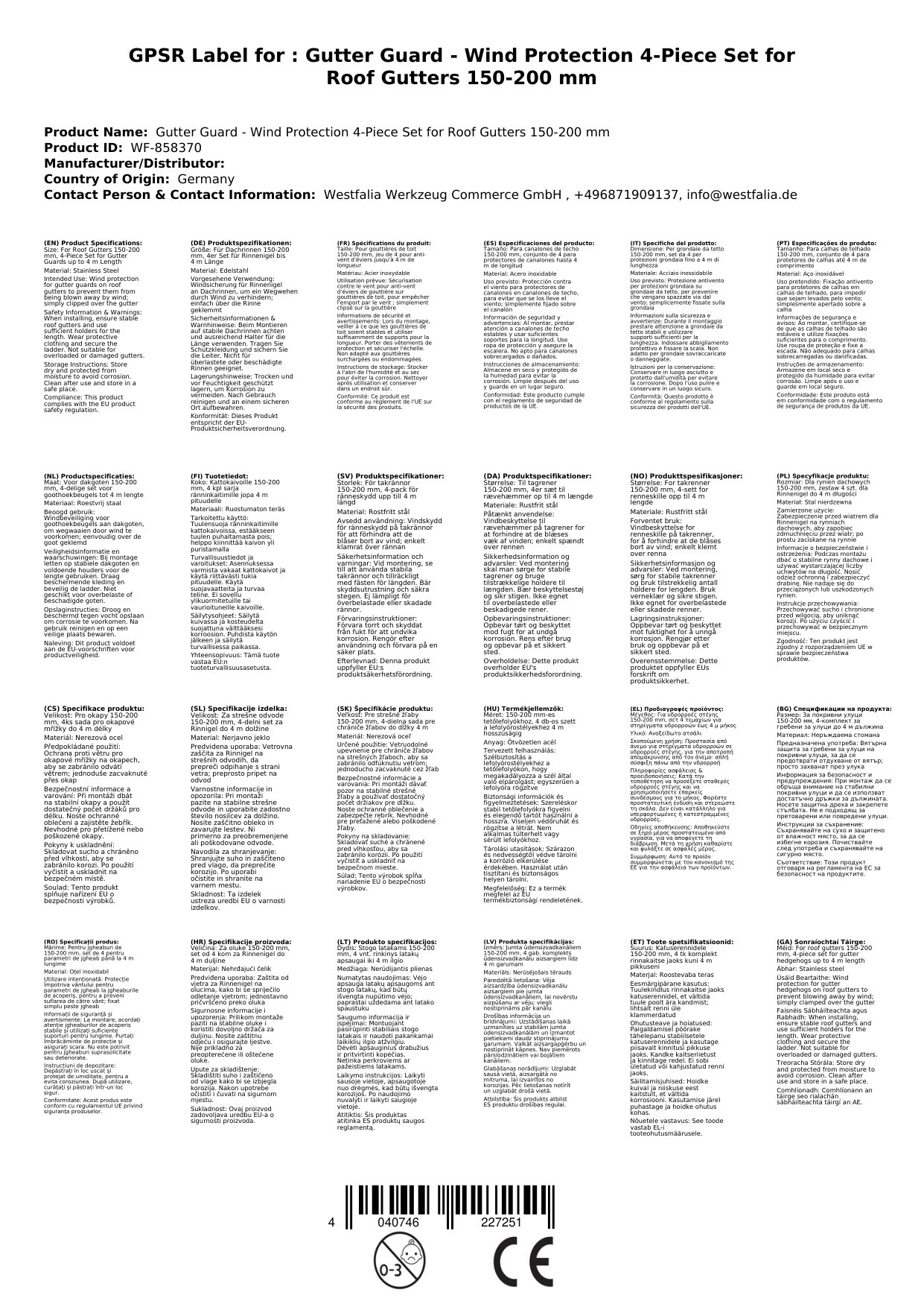 Stellen Sie eine Frage, um mehr über das Produkt zu erfahrenIm Set sind vier Halter enthalten, diese sind ausreichend für einen Rinnenigel mit einer Länge von 4 Metern. Die Sicherung wird einfach auf die Rinne über den Rinnenigel geklemmt.