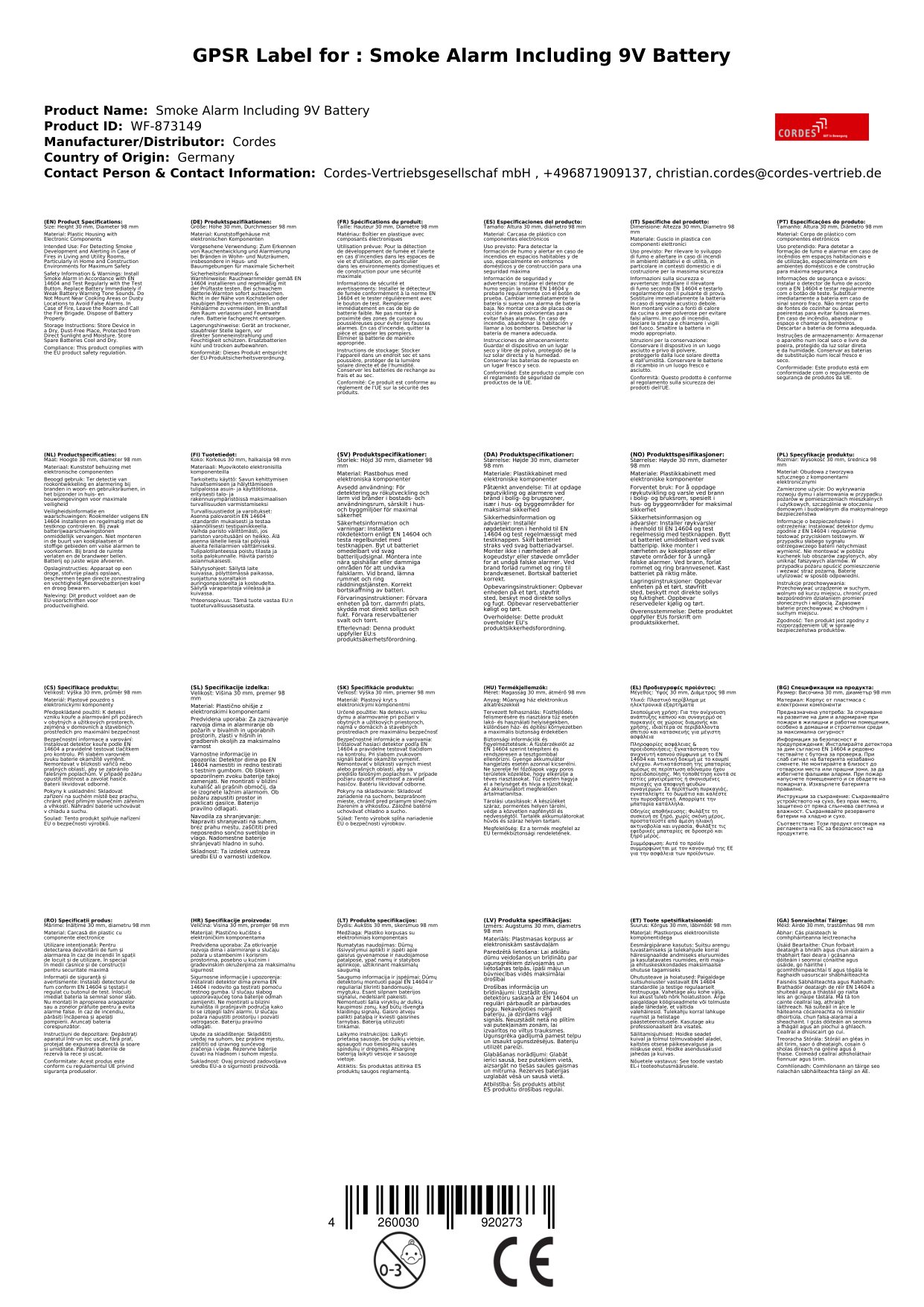 Stellen Sie eine Frage, um mehr über das Produkt zu erfahrenCordes Rauchwarnmelder inklusive 9 Volt Batterie - ein sicherer Schutz gegen den leisen Tod. Sehr Schnell angebracht und extrem lauter Alarm. Es ertönt ein Warnton bei schwacher Batterie. Die praktische Prüftaste ermöglicht die einfache Überprüfung der Funktionsfähigkeit. Für eine maximale Sicherheit in Ihrem Zuhause.