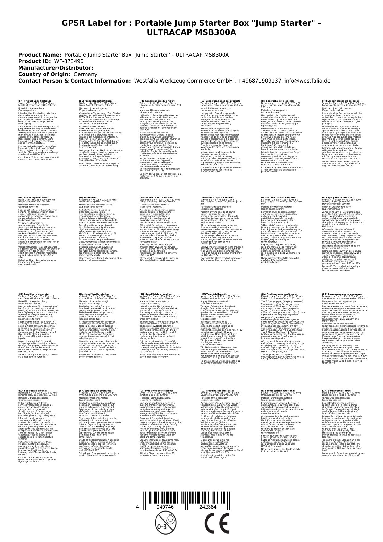 - 1 x Mobile Starthilfe Box " Jump Starter " - ULTRACAP MSB300A