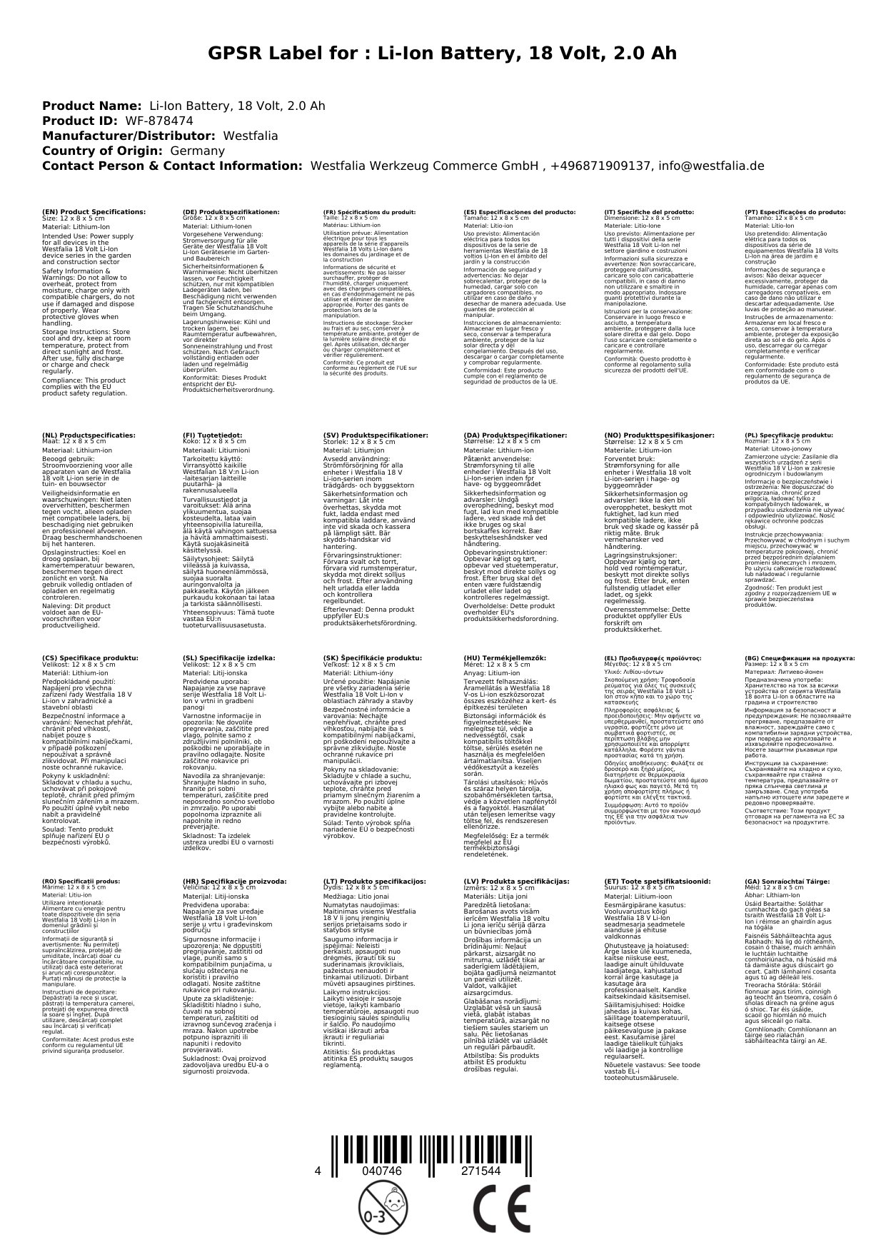 - Kompatibel mit allen Geräten aus der Westfalia 18 Volt Li-Ion Serie