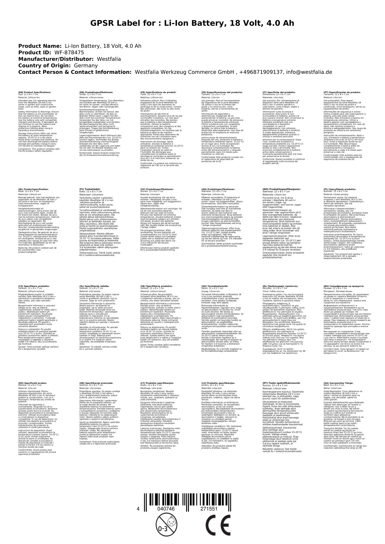 - Kompatibel mit allen Geräten aus der Westfalia 18 Volt Li-Ion Serie