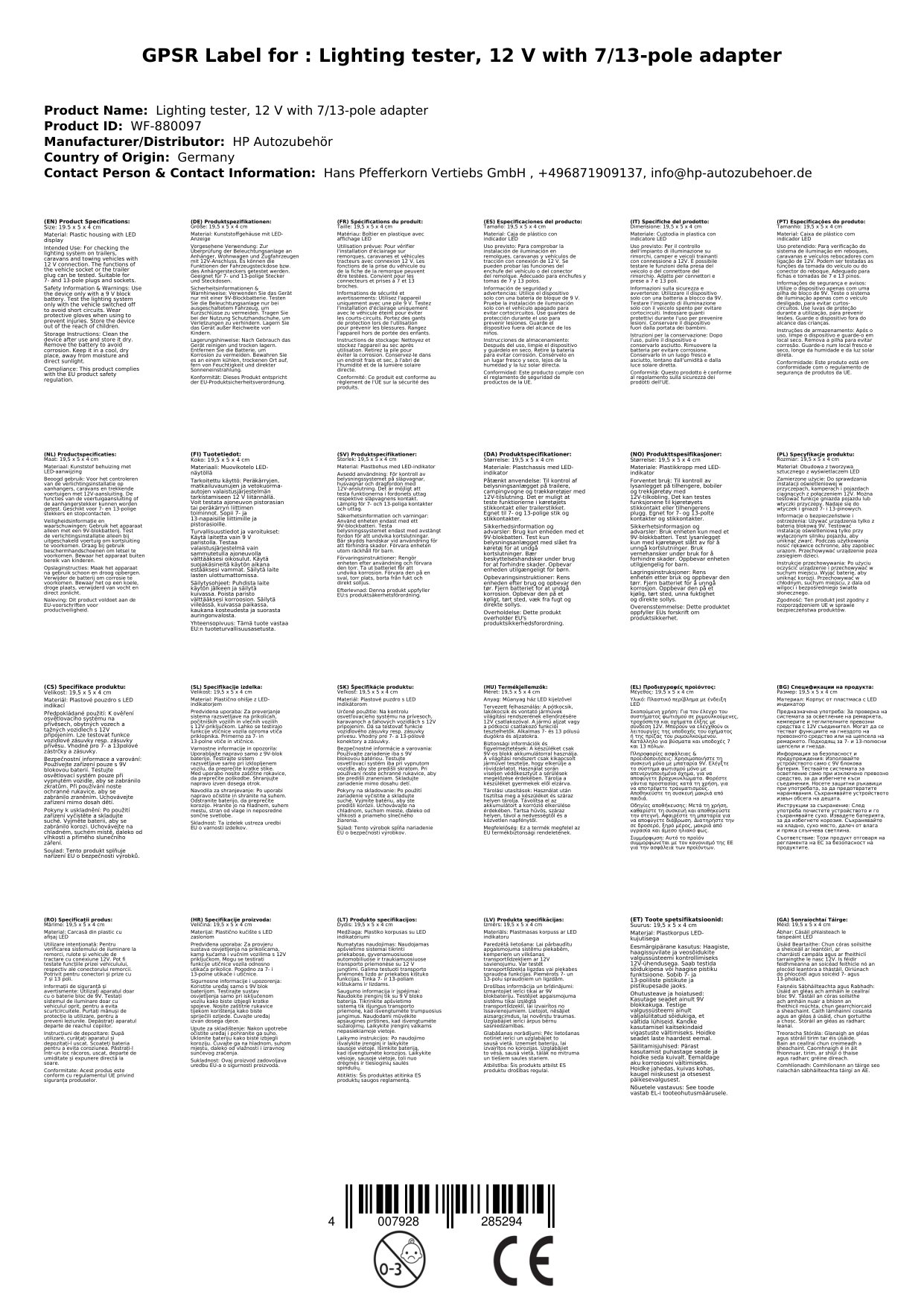 Zur Überprüfung der Beleuchtungsanlage an Anhänger, Wohnwagen und Zugfahrzeugen mit 12V-Anschluss. Es können die Funktionen der Fahrzeugsteckdose bzw. des Anhängersteckers getestet werden.