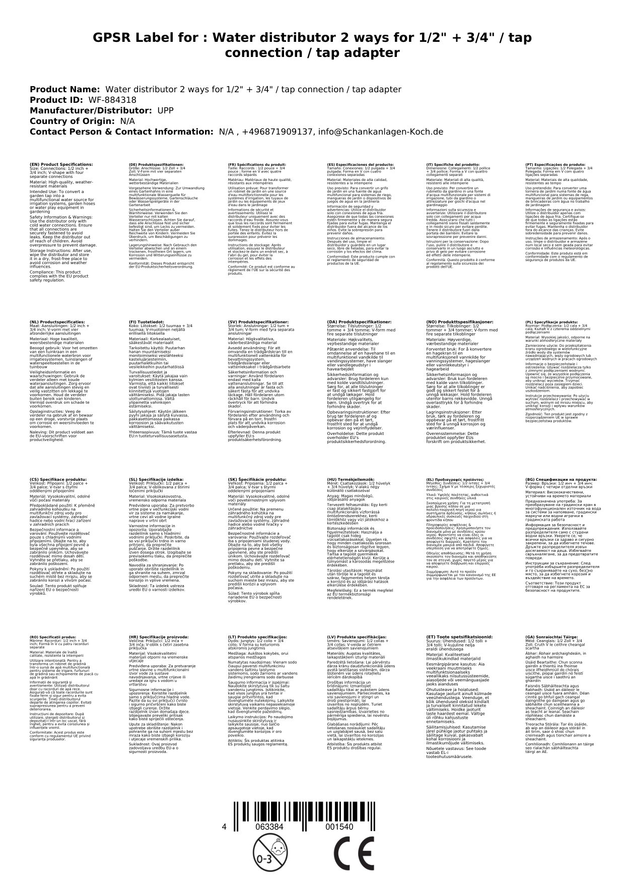 Wasserverteiler 2 Wege für 1/2' + 3/4' / Wasserhahnanschluss /Wasserhahnstecker