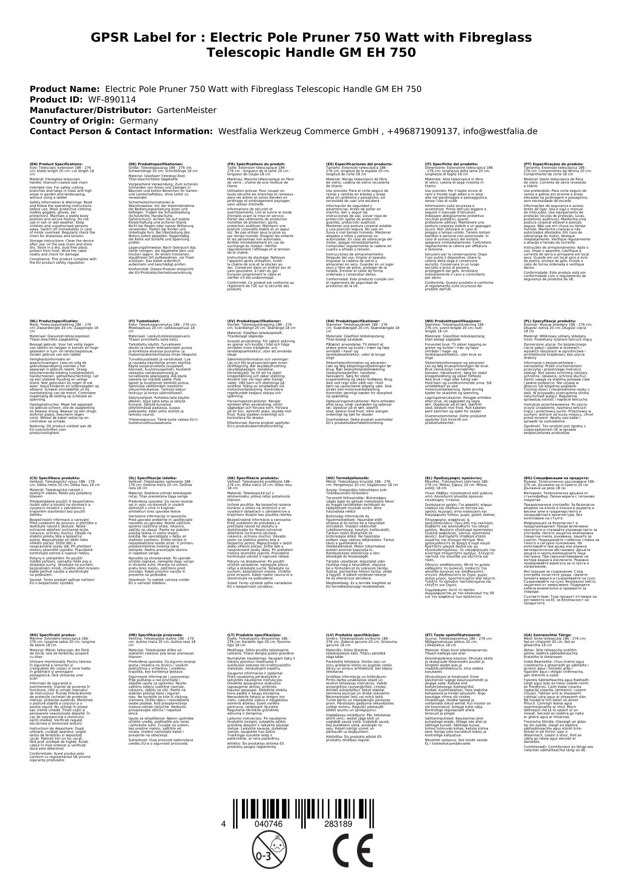 Elektro-Hochentaster 750 Watt mit Glasfaser-Teleskop-Stiel GM EH 750