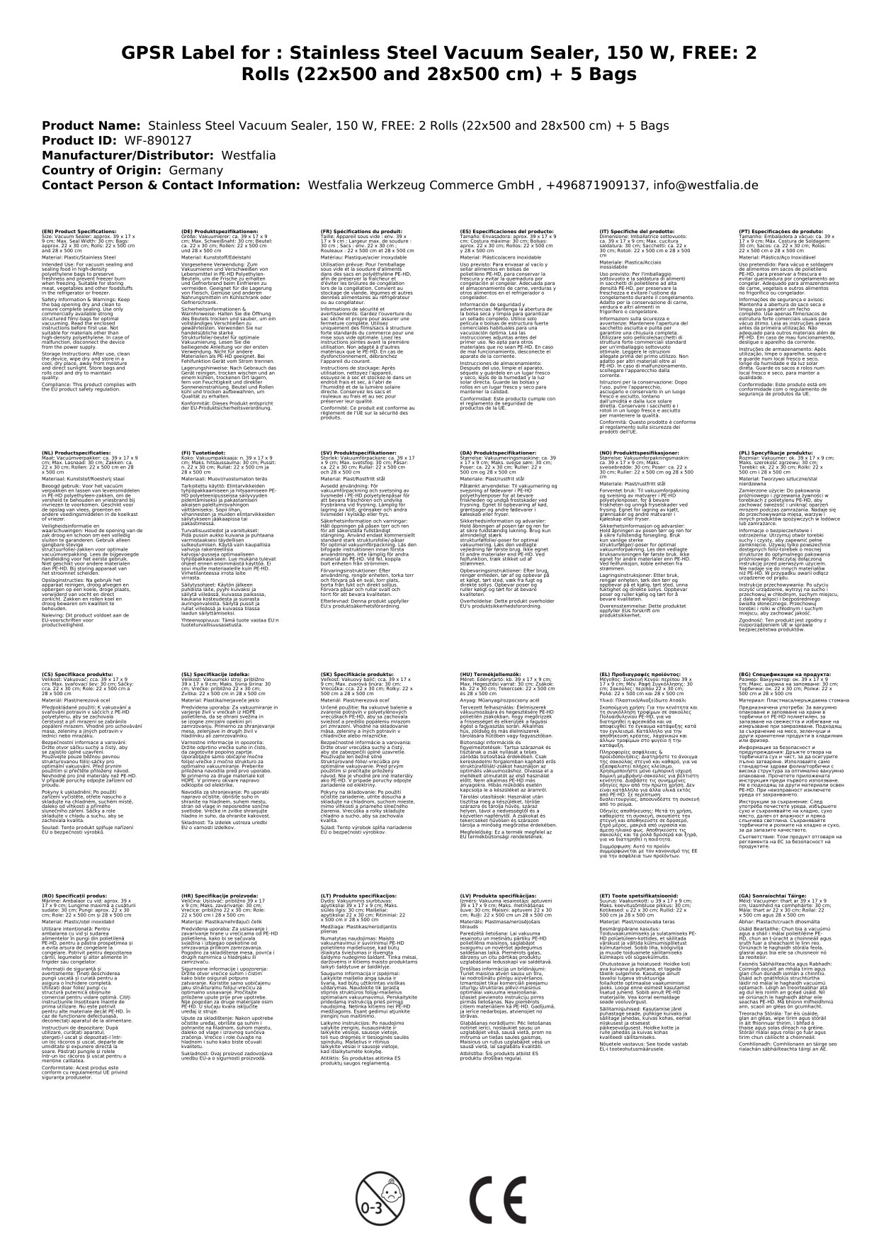 Stellen Sie eine Frage, um mehr über das Produkt zu erfahrenHinweis: Zum optimalen Vakuumieren mit Stark-Vakuumierern immer handelsübliche starke Strukturfolie/-beutel verwenden.
