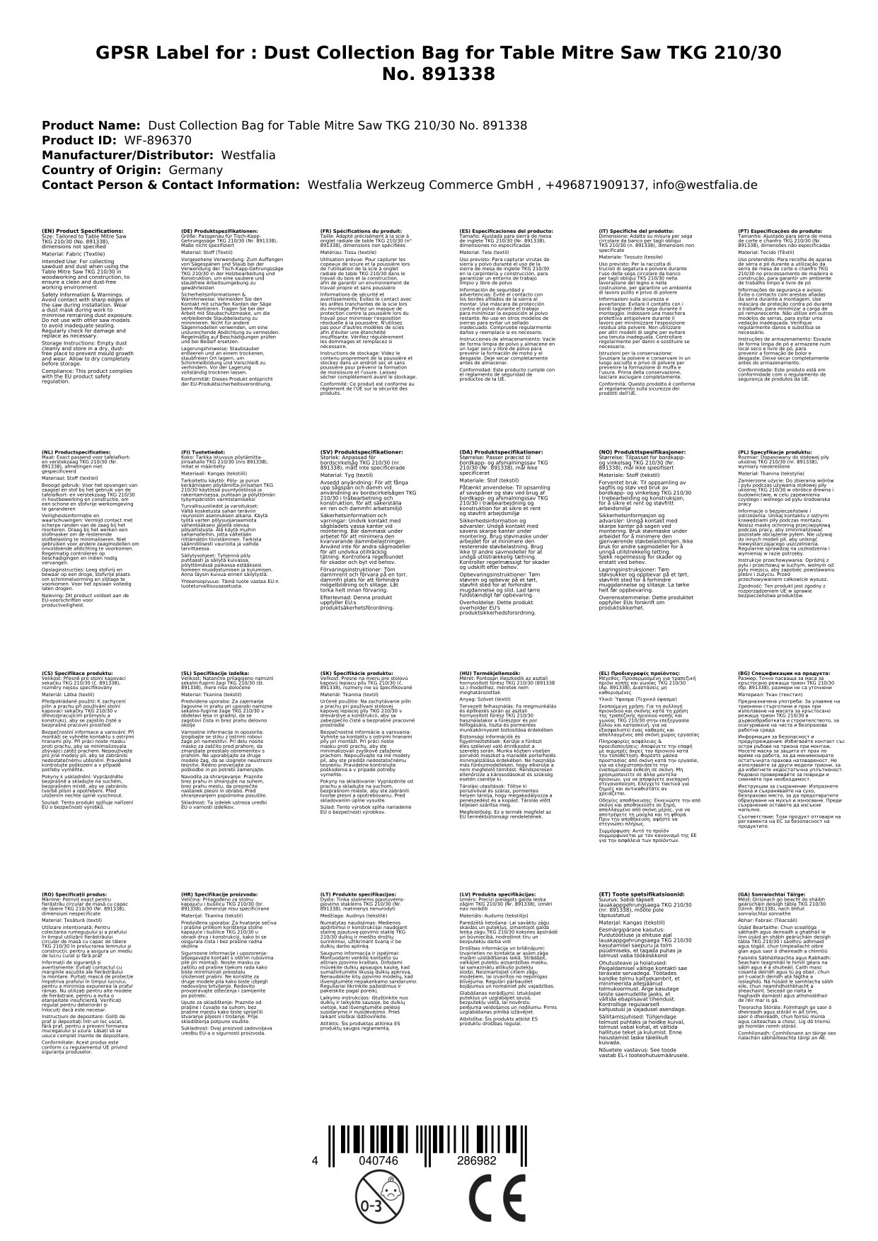Stellen Sie eine Frage, um mehr über das Produkt zu erfahren- 1 x Staubauffangbeutel für Tisch-Kapp-Gehrungssäge TKG 210/30 Nr. 891338